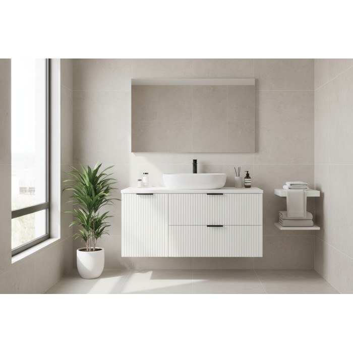 Ensemble de salle de bain NOXERA 120 cm – Meuble sous vasque suspendu blanc alpin mat avec plan vasque, niches et...