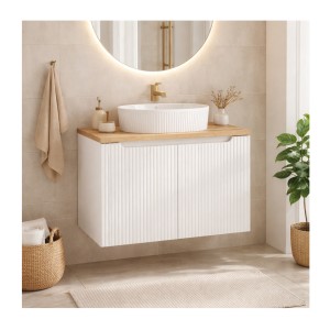 Anteprima Anteprima Aggiungi al carrello available Nuovo Prezzo Ensemble ICON blanc : meuble sous vasque 80cm + plan pour vasque aspect bois... 289,00 €