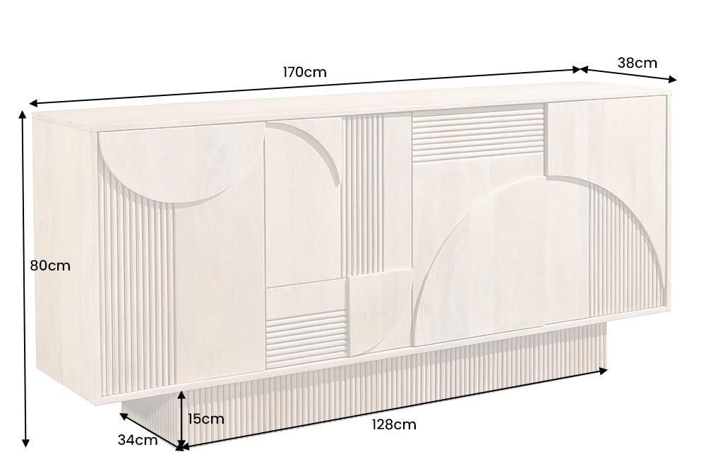 Apportez une touche d’élégance sculpturale à votre intérieur avec le buffet ORINO 170 cm. Réalisé en bois massif de manguier blanchi, ce meuble aux formes géométriques Art Déco offre une véritable œuvre d’art fonctionnelle pour votre salon ou salle à manger.