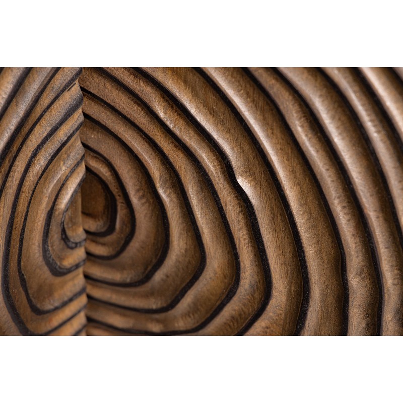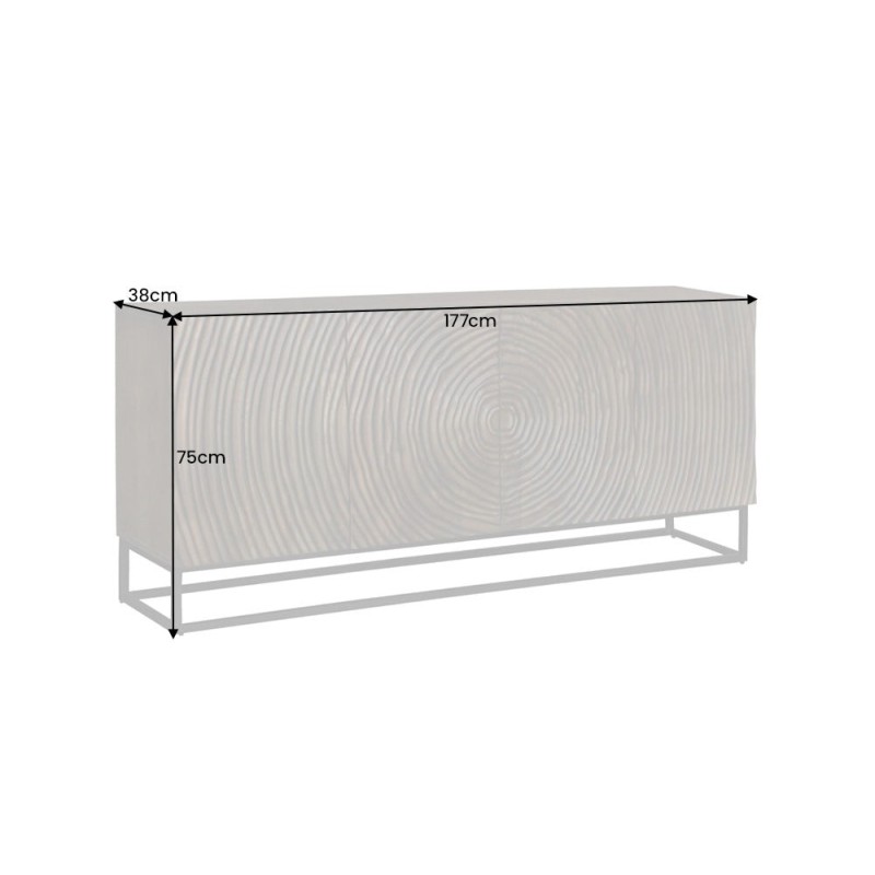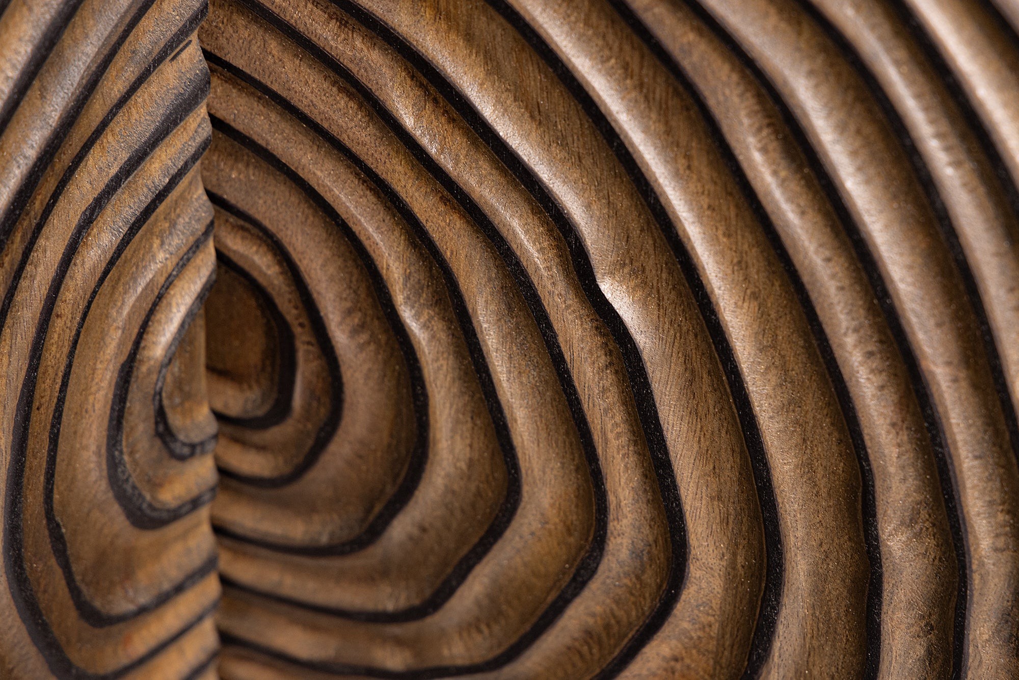 Le buffet ZENWOOD 180 cm séduit par son design naturel et apaisant. Réalisé en bois massif de manguier verni avec un dos en placage bois, il présente une façade sculptée en cercles concentriques rappelant les cernes d’un tronc d’arbre. Ce motif évoque le passage du temps, la nature et l’équilibre zen, pour un meuble à la fois authentique et contemporain.