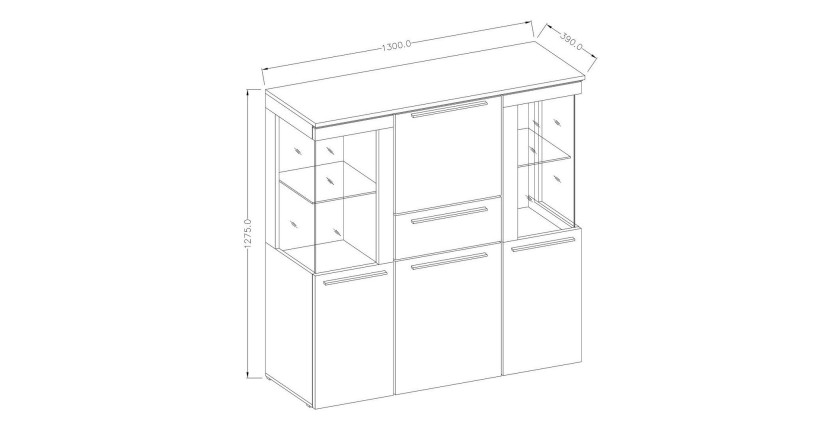 Credenza alta per soggiorno in colore grigio effetto ardesia collezione BOMBAYPortate un tocco di stile e modernità al vostro soggiorno con questa magnifica credenza alta della collezione BOMBAY. Con le sue dimensioni di L130 x H127,5 x P39cm, questa credenza offre un design elegante e contemporaneo.Realizzata in pannelli di particelle e MDF di prima qualità, questa credenza garantisce resistenza e durabilità eccezionali. Il suo colore grigio effetto ardesia le conferisce un aspetto originale e alla moda.Dotata di quattro porte (di cui tre a battente e una ribaltabile) e un ampio cassetto, questa credenza offre molteplici spazi di stoccaggio per organizzare i vostri oggetti. Potrete così mettere in ordine e nascondere i vostri oggetti preziosi e le vostre stoviglie.Per aggiungere un'atmosfera accogliente e sofisticata al vostro soggiorno, potrete scegliere tra una varietà di colori per creare l'atmosfera giusta secondo le vostre preferenze.Per quanto riguarda la manutenzione, vi basterà un panno morbido e umido per pulirla facilmente. La sua finitura opaca le conferisce inoltre una facilità di manutenzione notevole.*** LED NON INCLUSI ***Questa credenza alta della collezione BOMBAY è l'opzione ideale per completare il vostro soggiorno con stile e funzionalità. Non dimenticate di consultare il resto della gamma BOMBAY nel nostro negozio online per creare un'armonia perfetta nel vostro interno.
