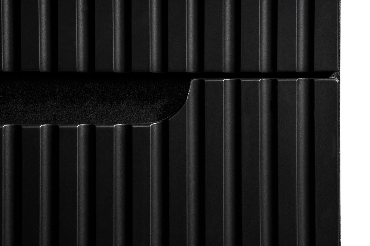 La façade du meuble présente un motif rainuré verticalement qui apporte du relief et souligne son style design. Le coloris noir mat renforce l’esthétique moderne de l’ensemble et s’intègre facilement dans différents styles d’aménagement.