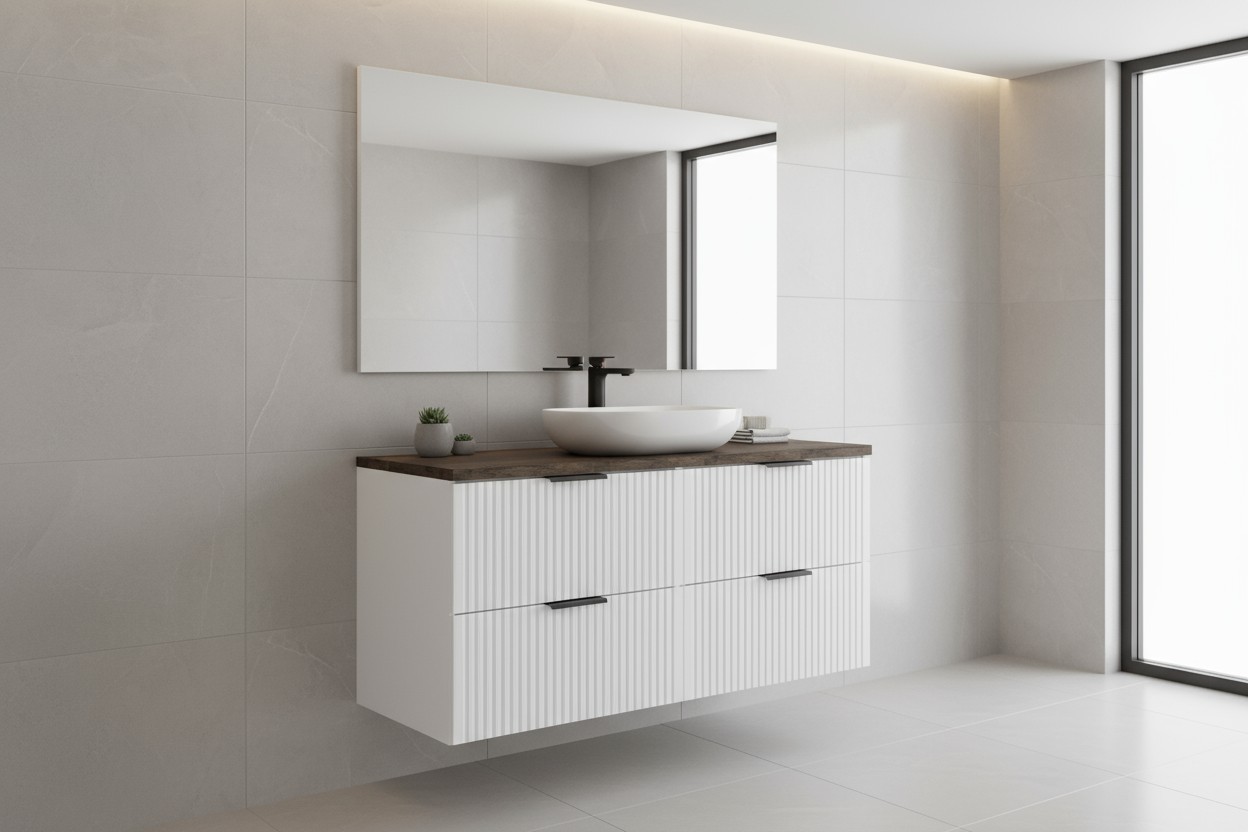 Fabriqué en panneaux de particules et MDF de première qualité, le meuble NOXERA 120 cm garantit une grande durabilité. Son design suspendu facilite le nettoyage et donne une impression d’espace, tandis que ses finitions mates apportent une touche d’élégance intemporelle.