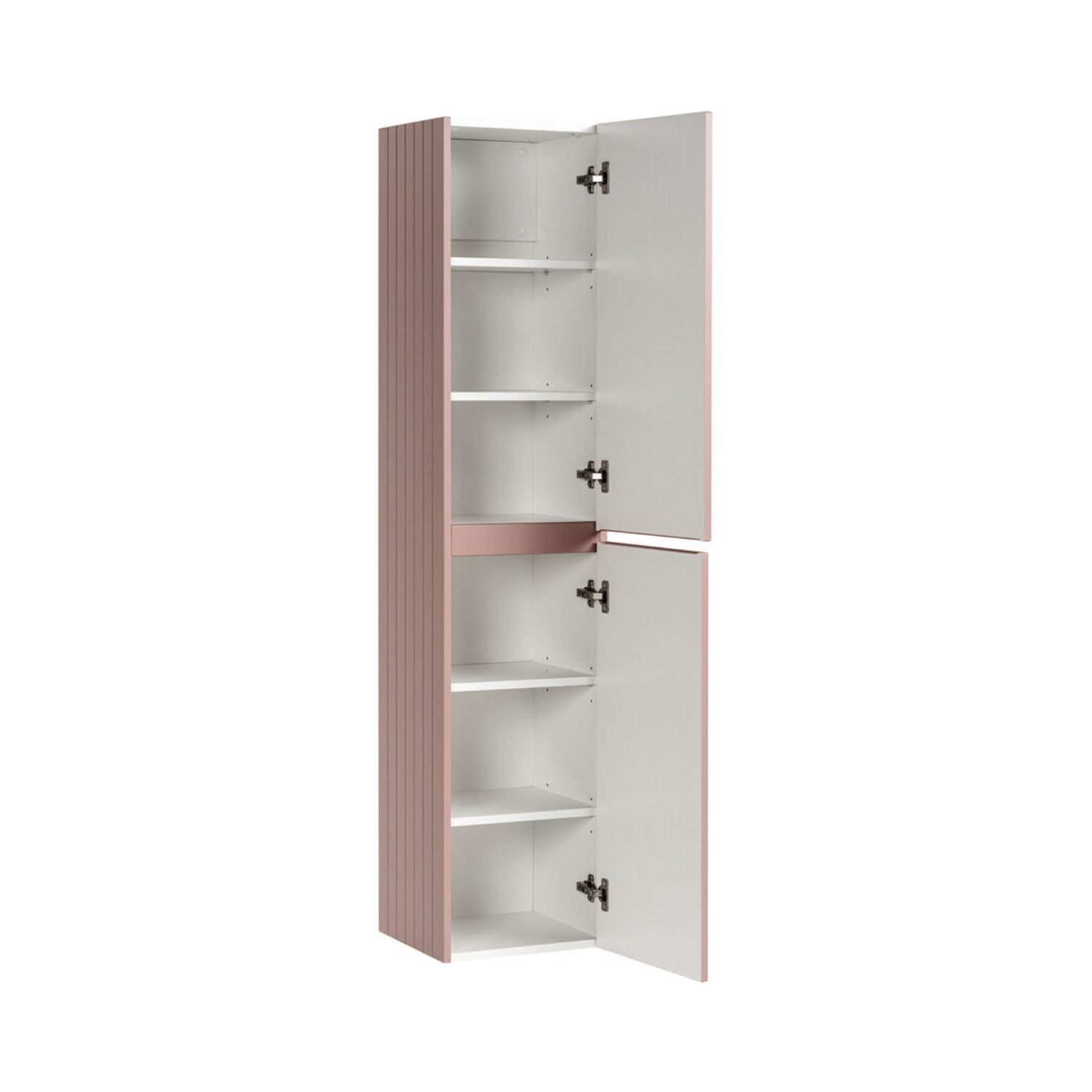 L’ensemble de salle de bain ICON 215 cm séduit par son style moderne et son coloris rose poudré élégant. Les façades des meubles sous vasque et de la colonne présentent un aspect rainuré verticalement qui apporte du relief et renforce l’identité contemporaine de cette composition.