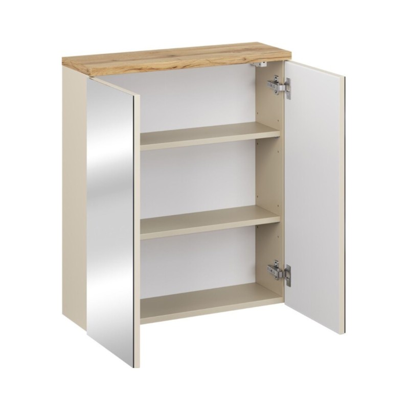 L'armadietto sospeso con 2 ante specchio ottimizza lo spazio offrendo contemporaneamente stoccaggio e funzionalità, perfetto per le tue routine quotidiane.