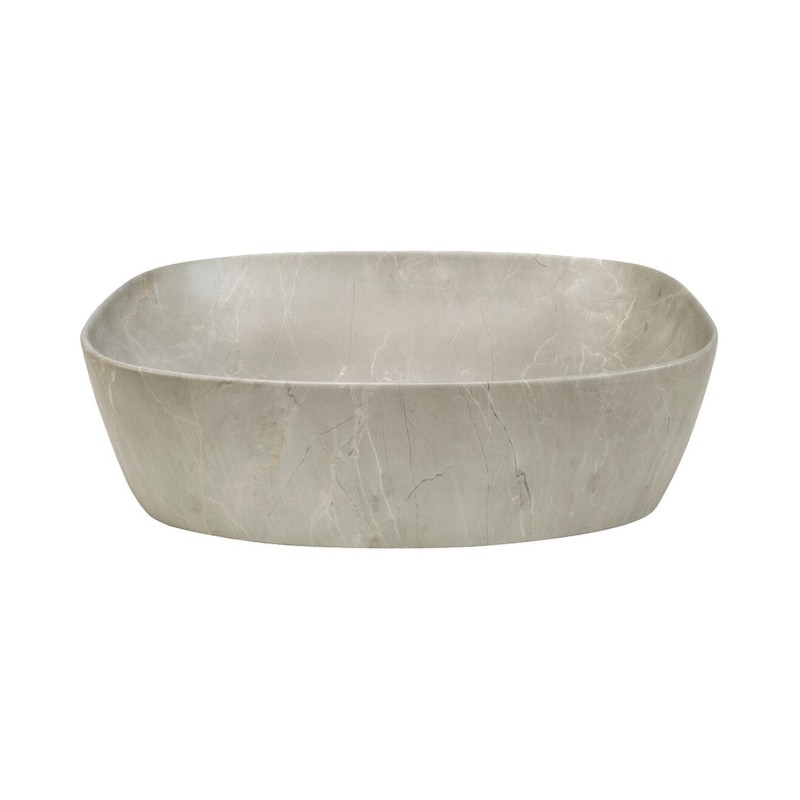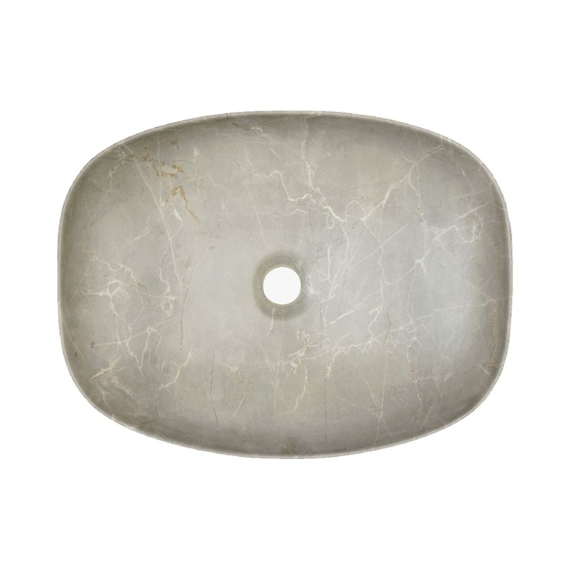 La vasque à poser en céramique, au design ovale avec un effet pierre naturelle grise, renforce l’élégance de l’ensemble et crée un rendu haut de gamme.
