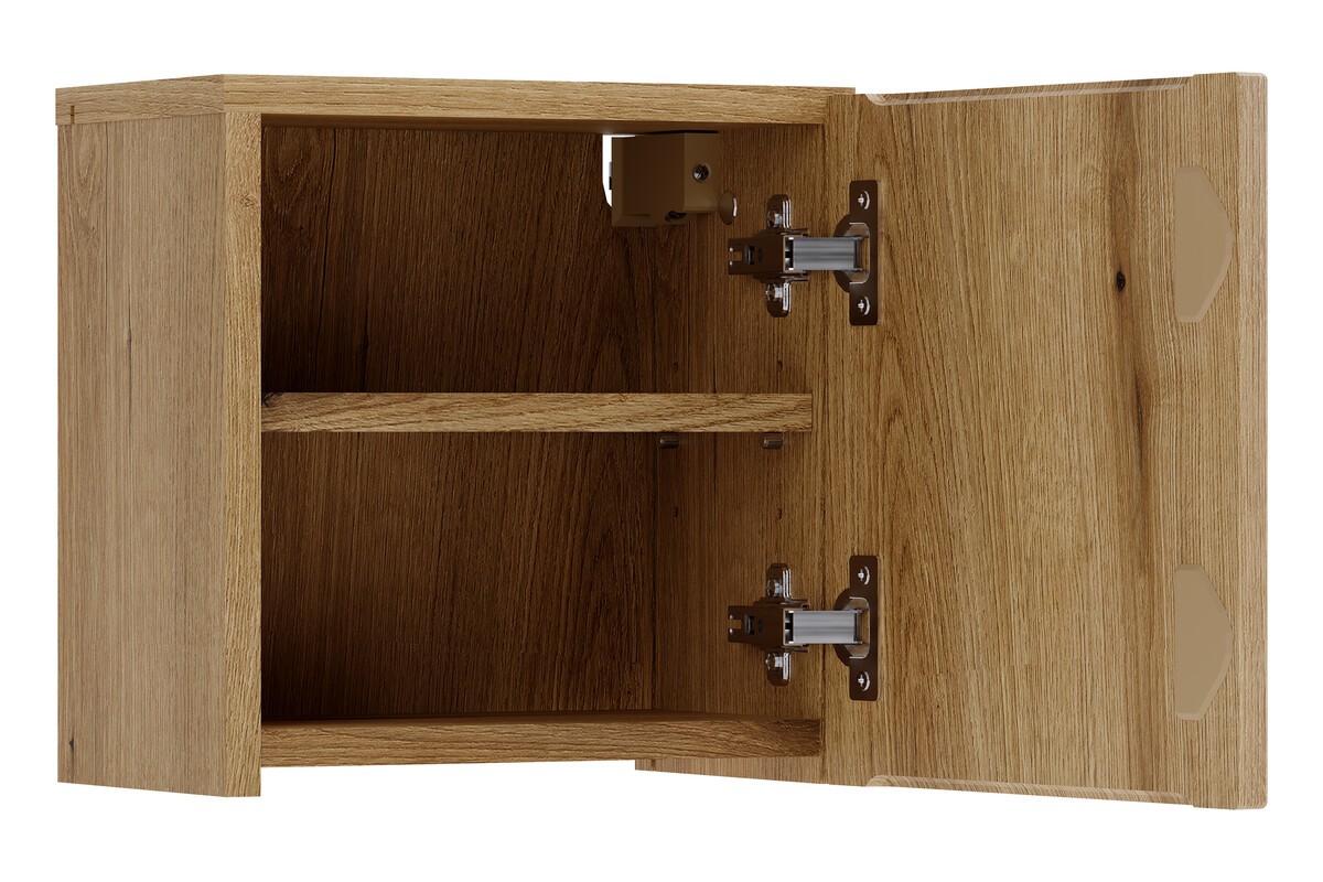 La porte est équipée d’un système de fermeture douce qui garantit une utilisation confortable et silencieuse au quotidien. Ce mécanisme améliore également la durabilité du meuble et protège les systèmes d’ouverture.