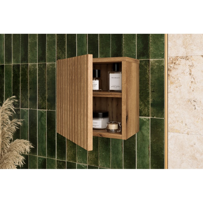 Le cube de rangement de salle de bain VANO séduit par son design moderne et son décor chêne Coast Evoke qui apporte chaleur et authenticité à votre intérieur. Sa façade avec rainures verticales et sa poignée intégrée soulignent son style contemporain tout en offrant une esthétique élégante et intemporelle.