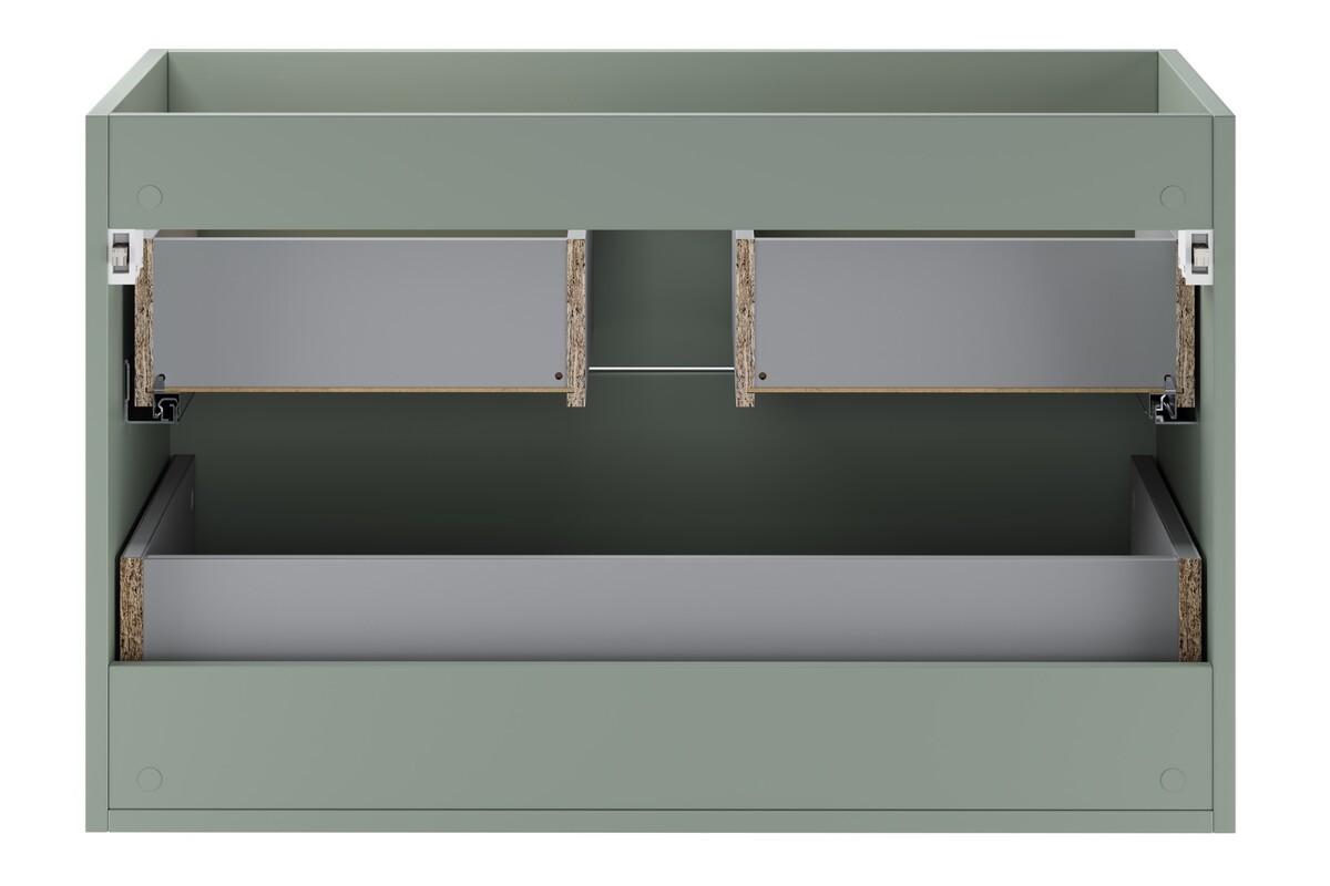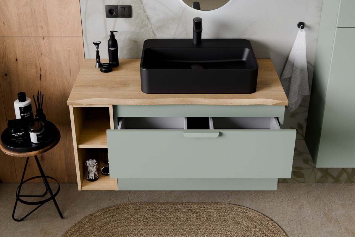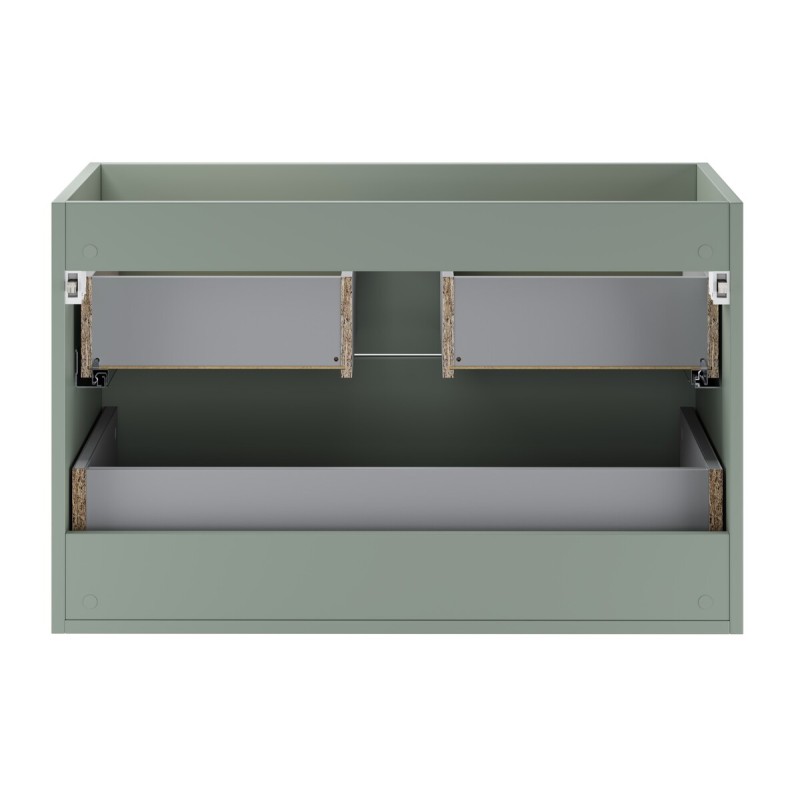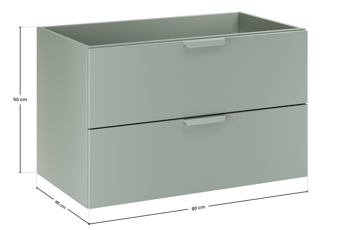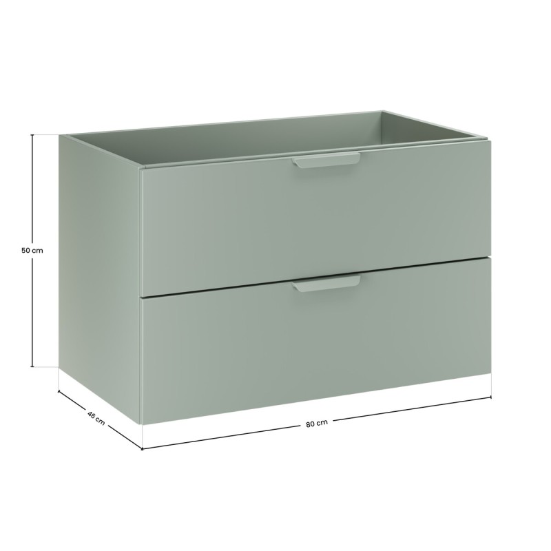 Le meuble sous vasque OSTER 80 cm se distingue par son design minimaliste et élégant, idéal pour créer une salle de bain moderne et harmonieuse. Son coloris vert sauge profond inspiré du décor Aloes apporte une touche naturelle et contemporaine à votre intérieur. Les façades lisses et épurées renforcent son esthétique moderne tandis que la poignée longue intégrée dans le même coloris se fond discrètement dans le design du meuble.