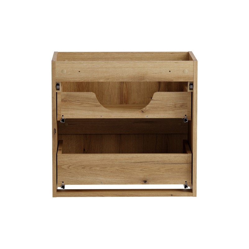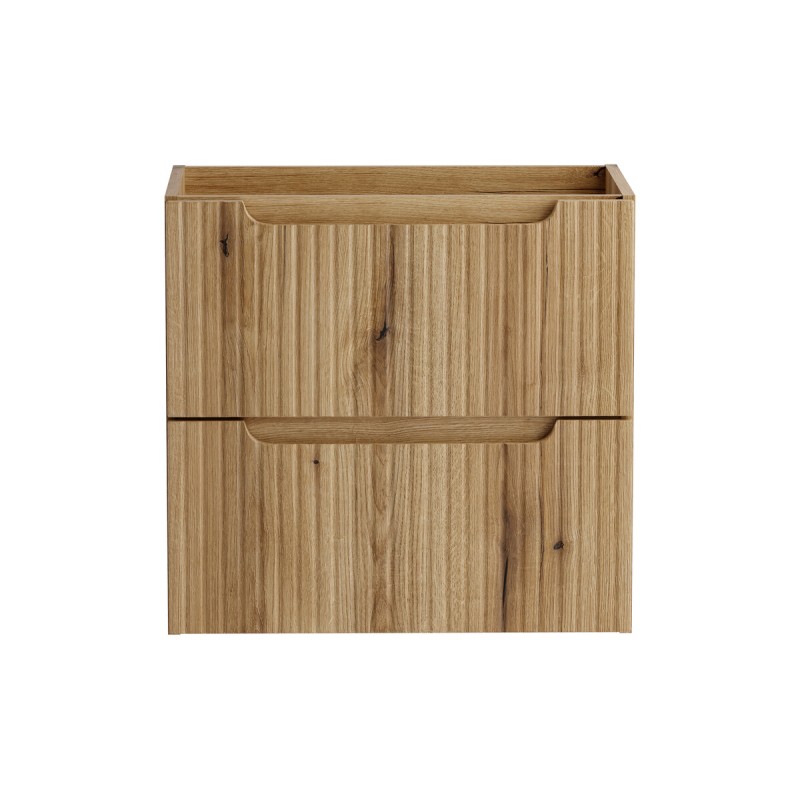 Le meuble sous vasque VANO 60 cm séduit par son design moderne et son décor chêne Coast Evoke qui apporte une touche chaleureuse et naturelle à votre salle de bain. Ses façades avec rainures verticales et ses poignées discrètement intégrées soulignent son style contemporain tout en conservant une esthétique élégante et intemporelle.
