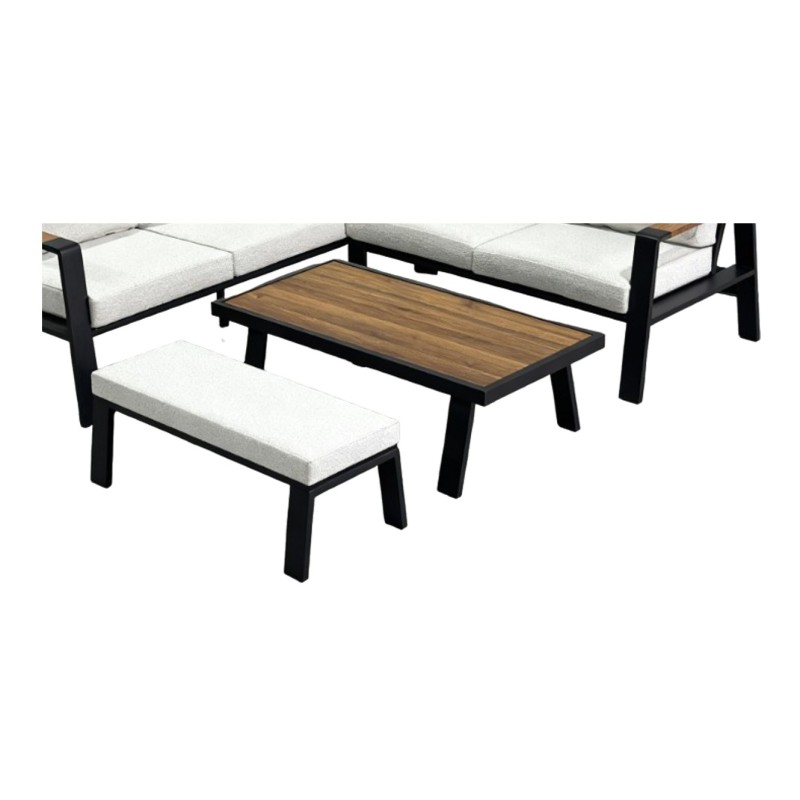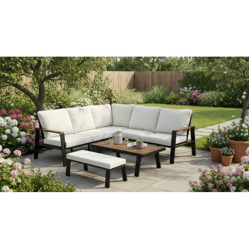 Créez un espace extérieur élégant et confortable avec le salon de jardin CALVARO. Cet ensemble complet associe une structure en aluminium noir moderne, des coussins beige chaleureux et des détails effet bois pour une esthétique à la fois contemporaine et naturelle. Idéal pour aménager une terrasse, un jardin ou un patio, il offre un espace convivial pour se détendre ou partager des moments agréables en plein air.