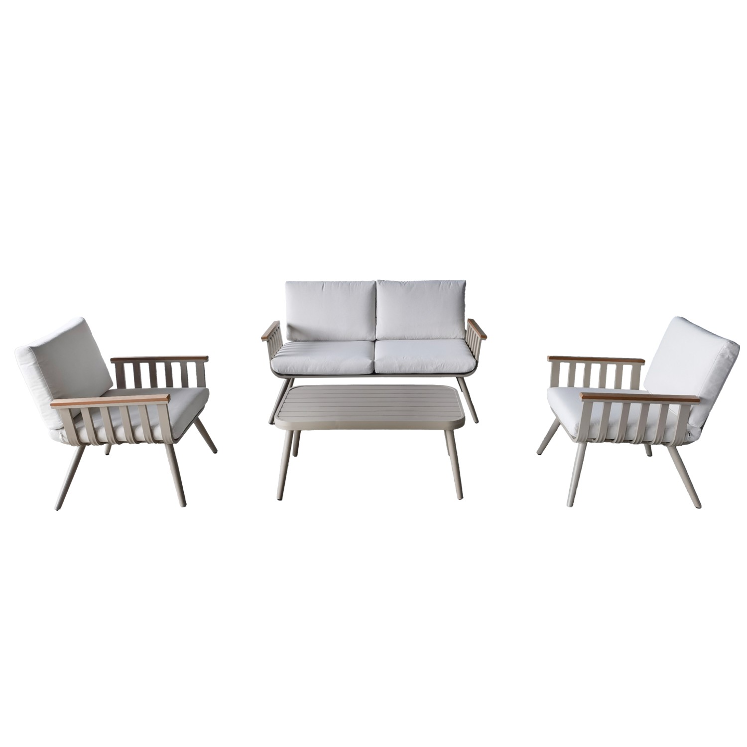 La structure en aluminium garantit une excellente durabilité face aux conditions extérieures. Ce matériau est apprécié pour sa légèreté, sa résistance à la corrosion et sa facilité d’entretien. Les accoudoirs effet bois apportent une touche chaleureuse et naturelle tout en conservant les avantages d’un matériau moderne nécessitant peu d’entretien.