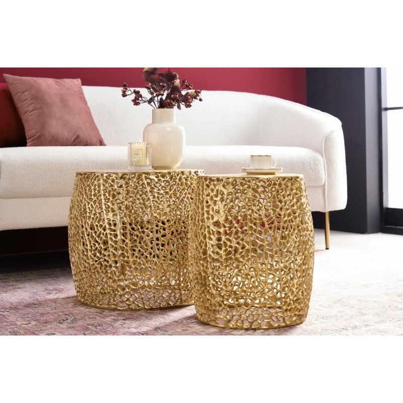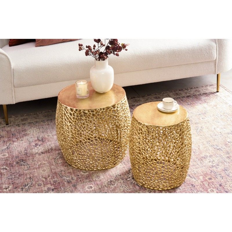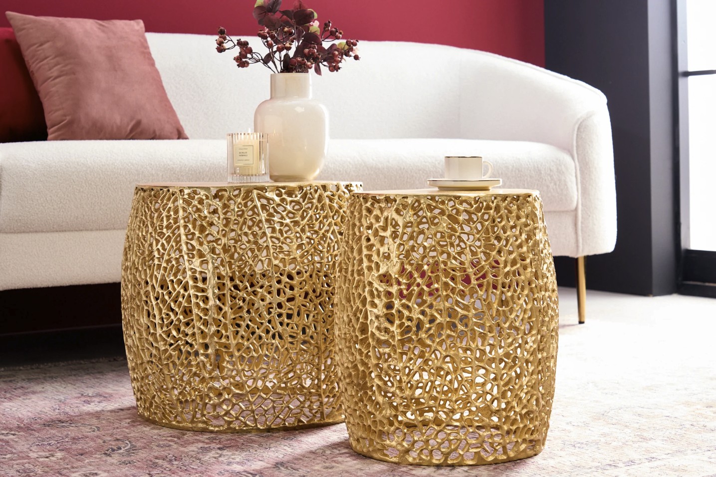 Le lot de 2 tables basses METRIX en finition bronze propose une interprétation contemporaine et chaleureuse du mobilier de salon. Leur format compact et leur esthétique équilibrée en font des pièces faciles à intégrer, idéales pour apporter du caractère à un intérieur moderne sans surcharger l’espace.