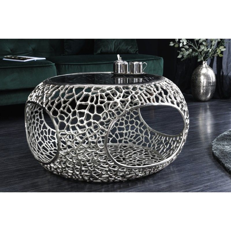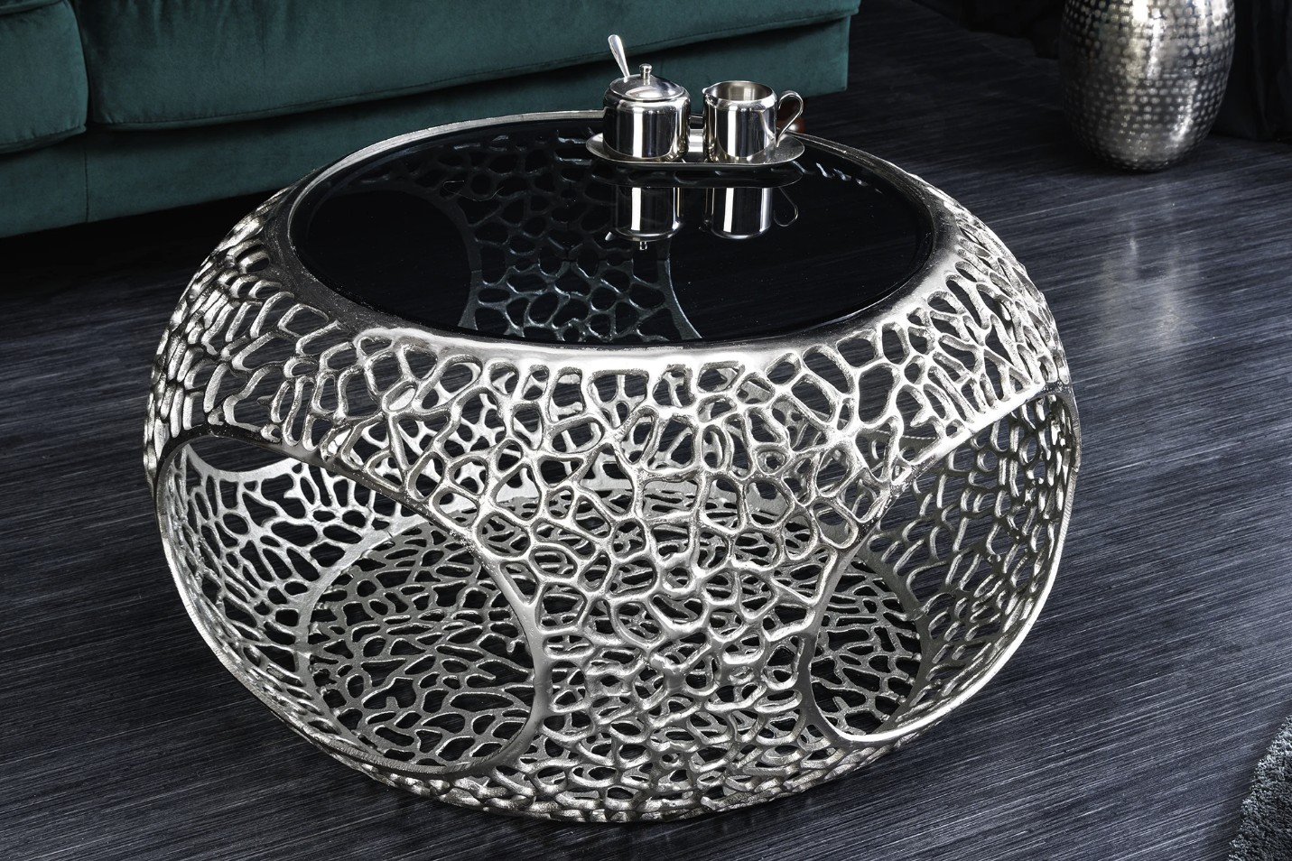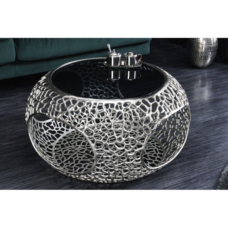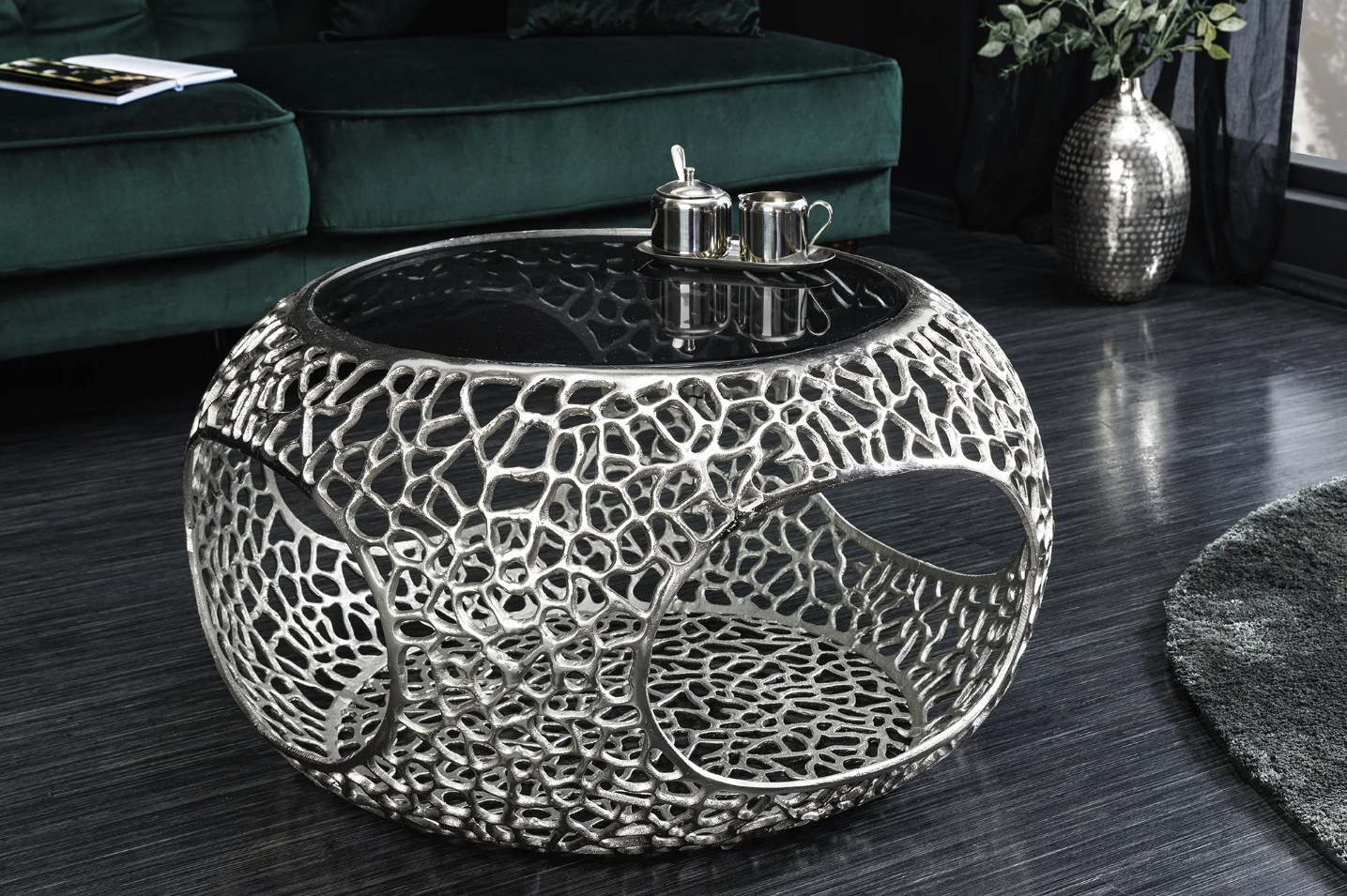 La table basse METRIX ronde de 74 cm associe une esthétique contemporaine affirmée à une fonctionnalité pensée pour le quotidien. Sa structure en aluminium argenté met en valeur un plateau en verre trempé noir, tandis que son architecture ouverte offre un accès pratique au rangement depuis tous les côtés.