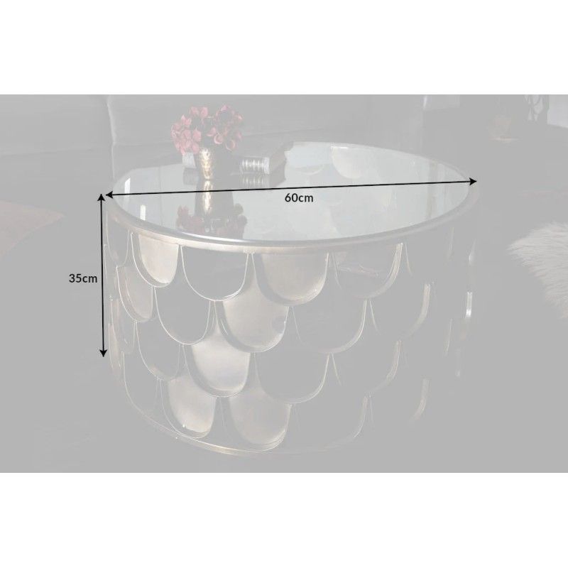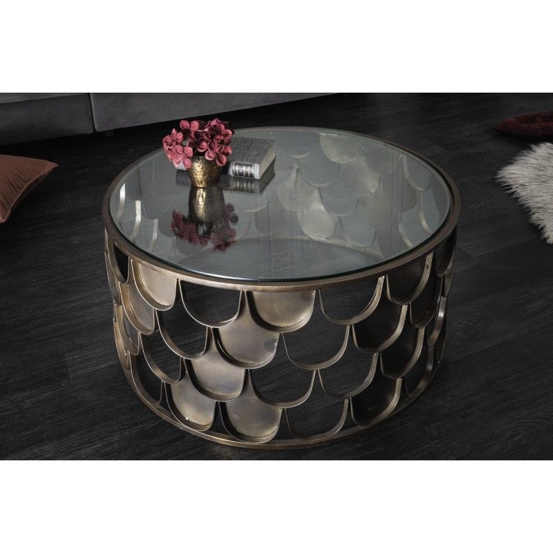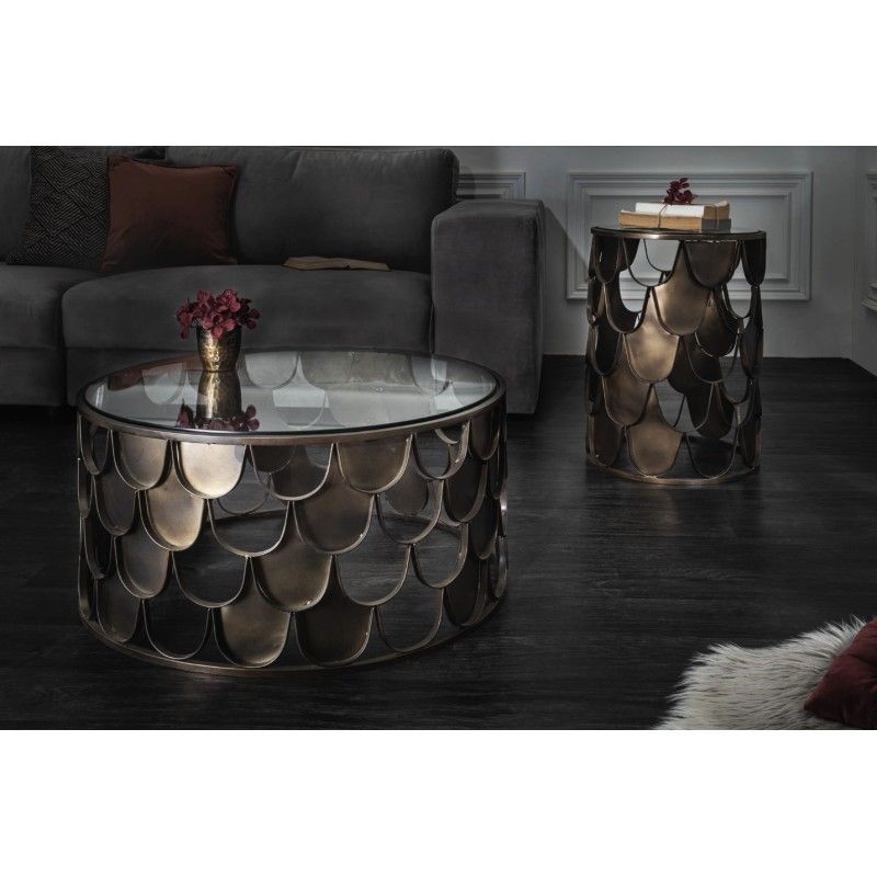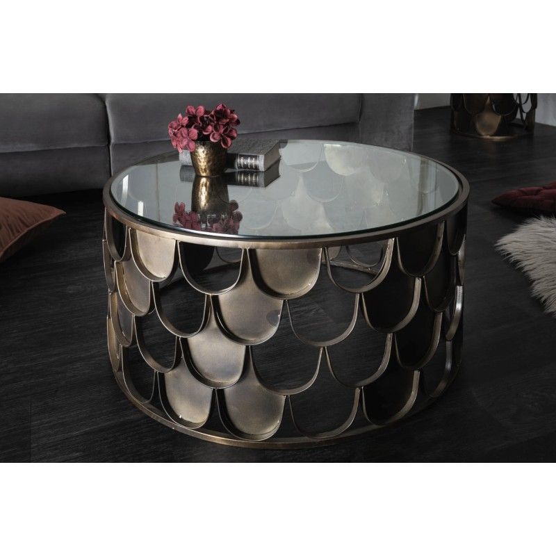 Cette table basse METRIX repose sur une structure en métal dont le motif effet écaille de poisson alterne zones ajourées et surfaces pleines, créant un relief visuel riche et original. Le plateau en verre trempé offre une surface résistante et facile à entretenir, tout en laissant apparaître le travail graphique de la base. L’association du verre et du métal bronze confère à cette table basse un style à la fois design et sophistiqué.