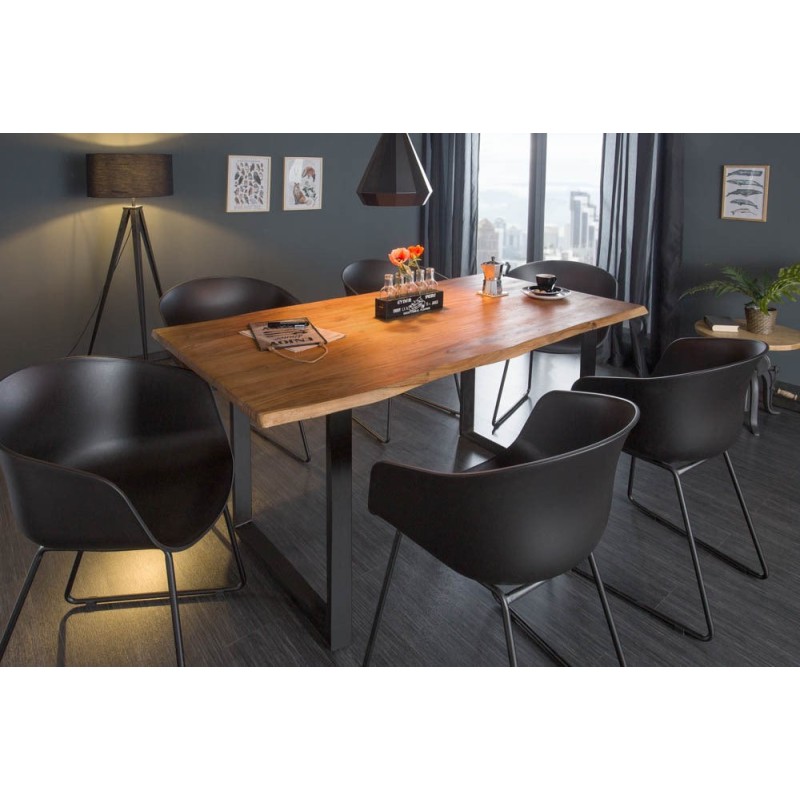 Découvrez la table de salle à manger ARKAYA 160 cm, une alliance réussie entre la chaleur du bois massif d’acacia sauvage verni et la modernité du métal noir. Avec son design équilibré et ses pieds en U, elle apporte un caractère à la fois robuste et raffiné à votre intérieur. Idéale pour accueillir famille et amis, elle incarne le mobilier industriel dans toute sa splendeur.