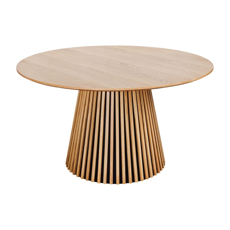 Alliez convivialité et style avec la table de salle à manger KANOVA 120 cm. Son plateau rond en chêne clair et sa base centrale en font une pièce élégante et moderne, idéale pour sublimer votre salle à manger. Avec son design équilibré et ses finitions soignées, elle offre une atmosphère douce et lumineuse à votre intérieur.