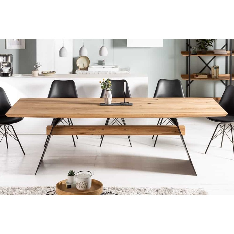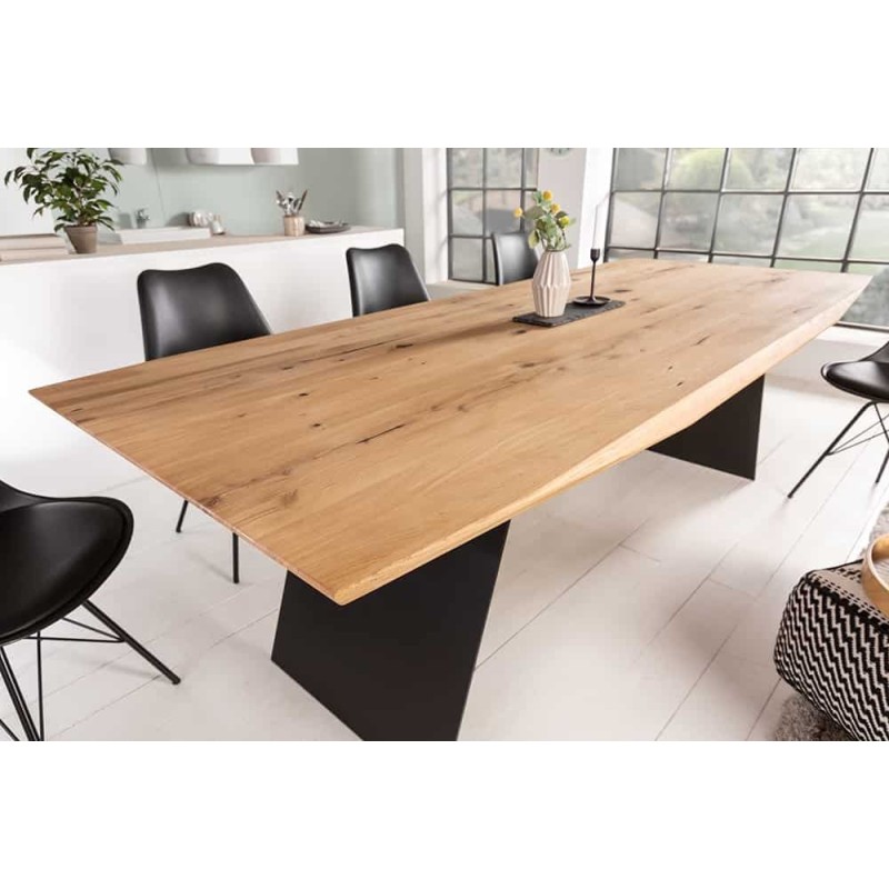 La ZENTOR 240 cm se distingue par ses finitions naturelles et ses pieds géométriques en métal noir, qui apportent une touche contemporaine à son charme brut. Son grand plateau rectangulaire en chêne sauvage huilé met en valeur les veinures du bois et invite à la convivialité, tout en assurant une stabilité exceptionnelle pour accueillir jusqu’à 10 convives.