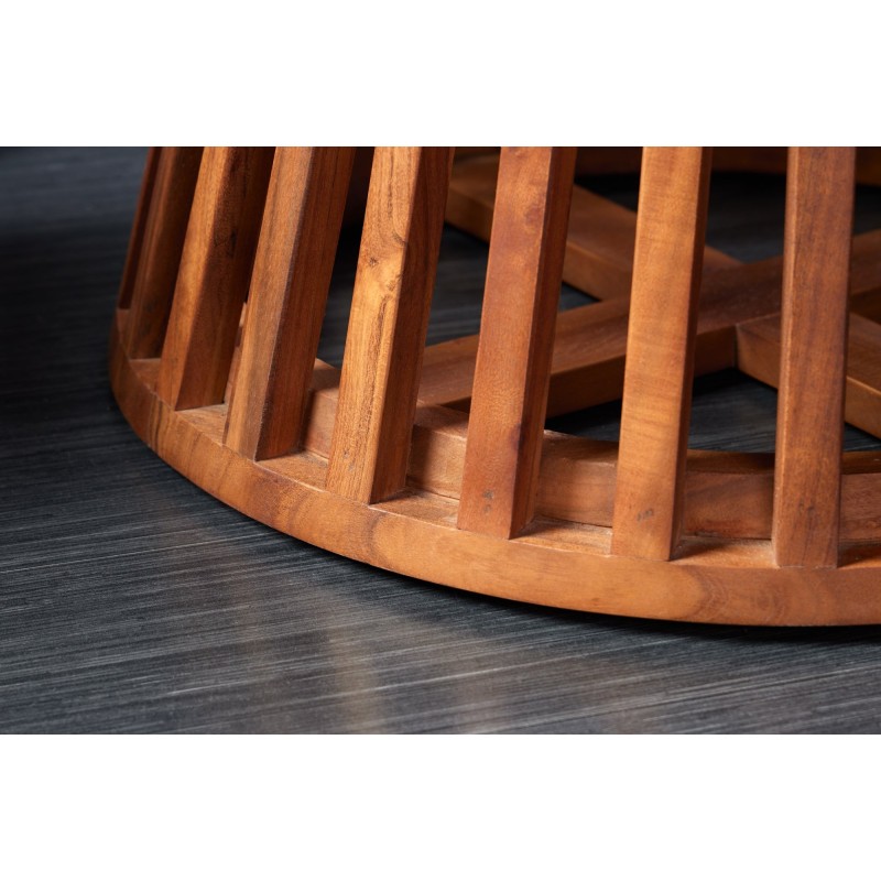 Les meubles en bois sont des produits naturels individuels : chaque pièce unique peut présenter des irrégularités, des nœuds, des inclusions ou même des fissures. Des différences de dimensions et de jeux peuvent apparaître en raison de la croissance naturelle et de l'élasticité du bois transformé. Ces caractéristiques ne constituent donc pas des motifs de réclamation, mais une preuve authentique du caractère naturel des meubles.