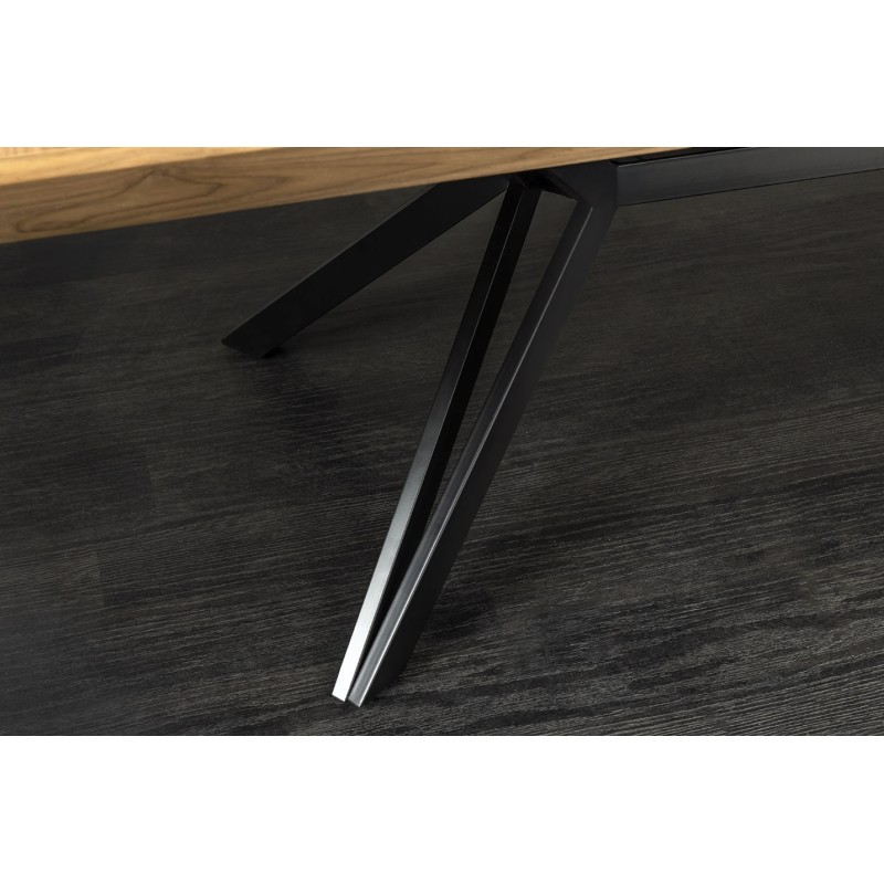 La table de salle à manger RADIAM mise sur un style moderne et sophistiqué grâce à son plateau en MDF plaqué bois de noyer clair, présenté avec un dégradé subtil allant du bois clair au centre vers un ton encore plus clair sur les extrémités. Sa structure en métal noir assure stabilité, élégance et contraste, faisant de cette table une pièce centrale raffinée pour votre intérieur.