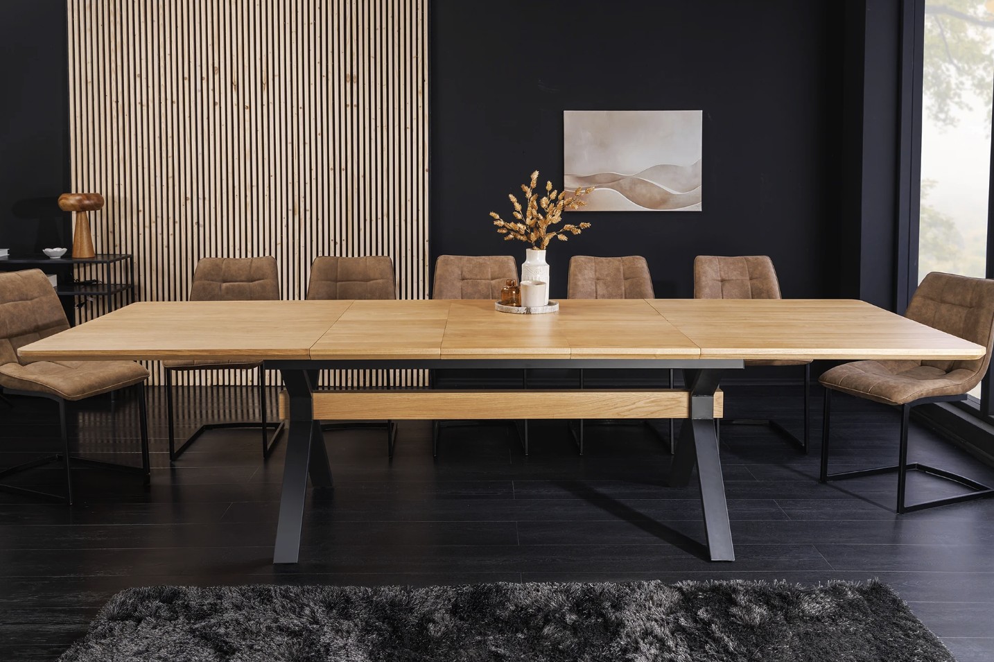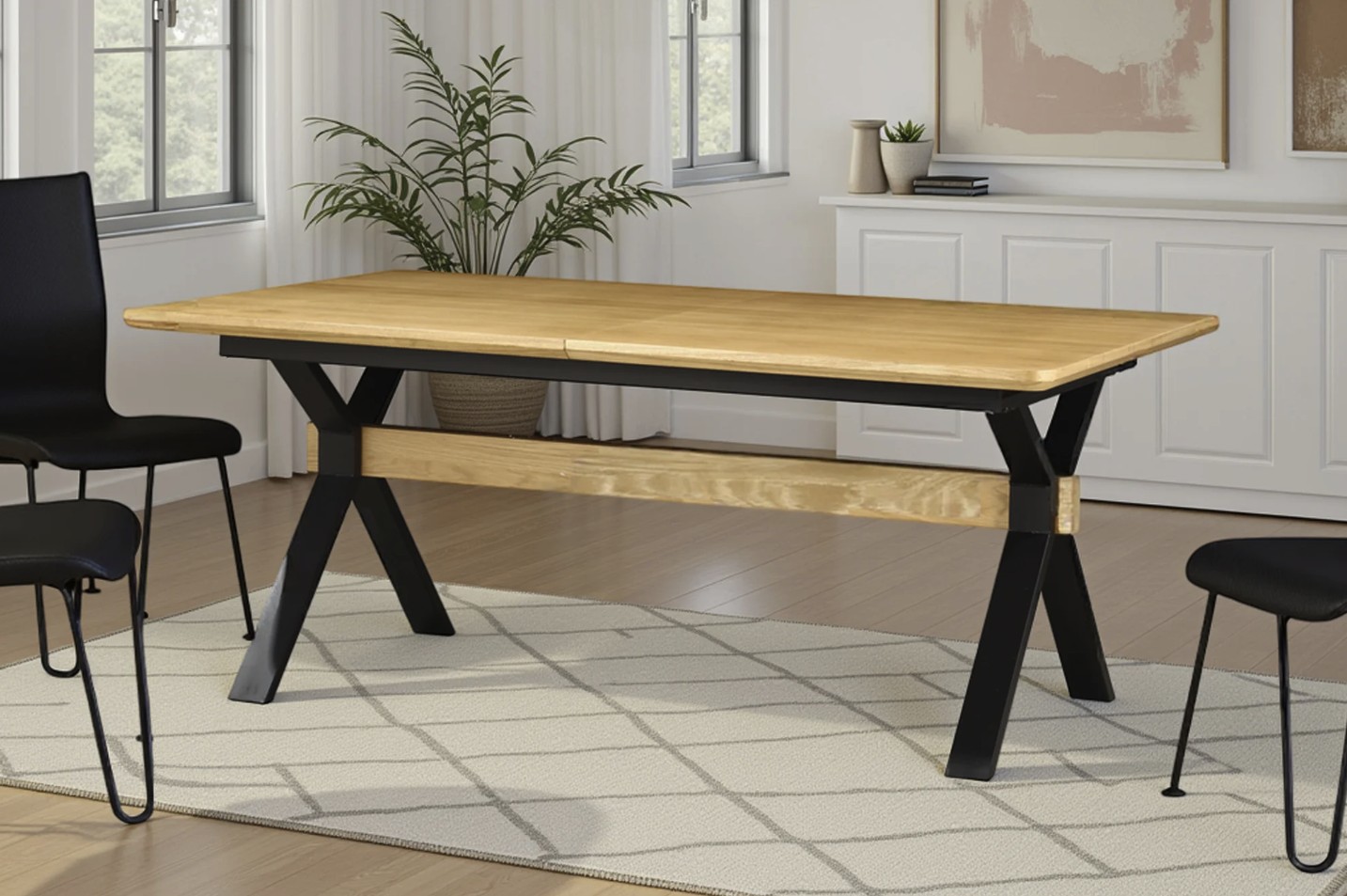 Conçue pour accueillir famille et invités, la table RADIAM est équipée d’un mécanisme d’extension permettant de passer aisément de 180 cm à 300 cm. Son plateau épais de 40 mm garantit une bonne stabilité, tandis que sa structure métallique offre solidité et longévité. Avec une capacité de charge allant jusqu’à 80 kg, elle combine parfaitement design et fonctionnalité au quotidien.