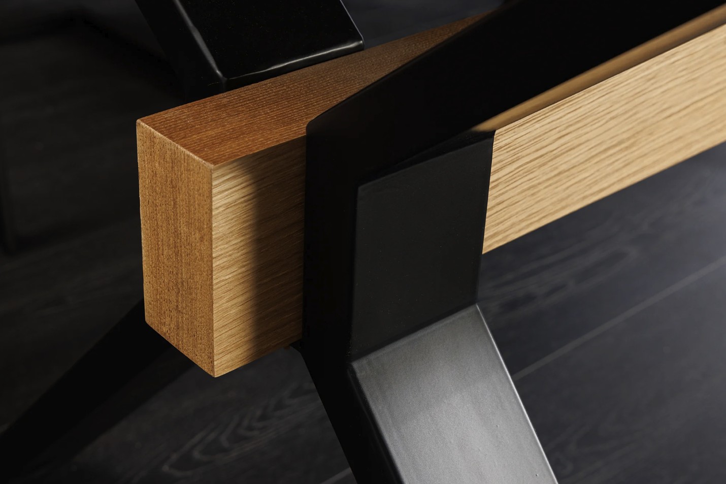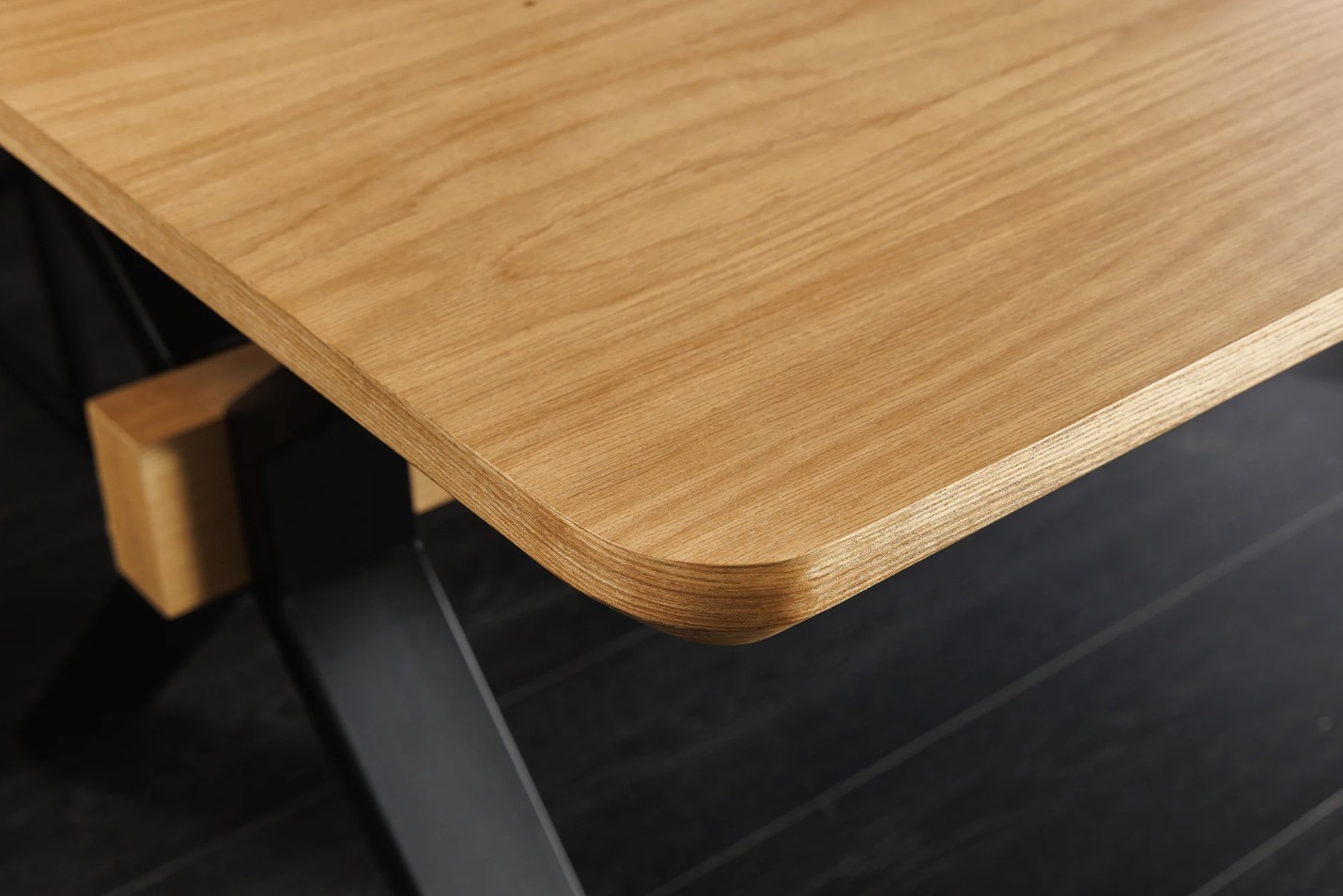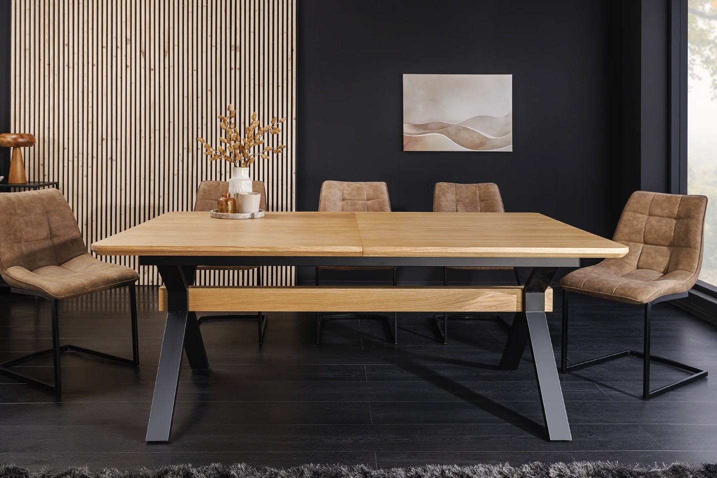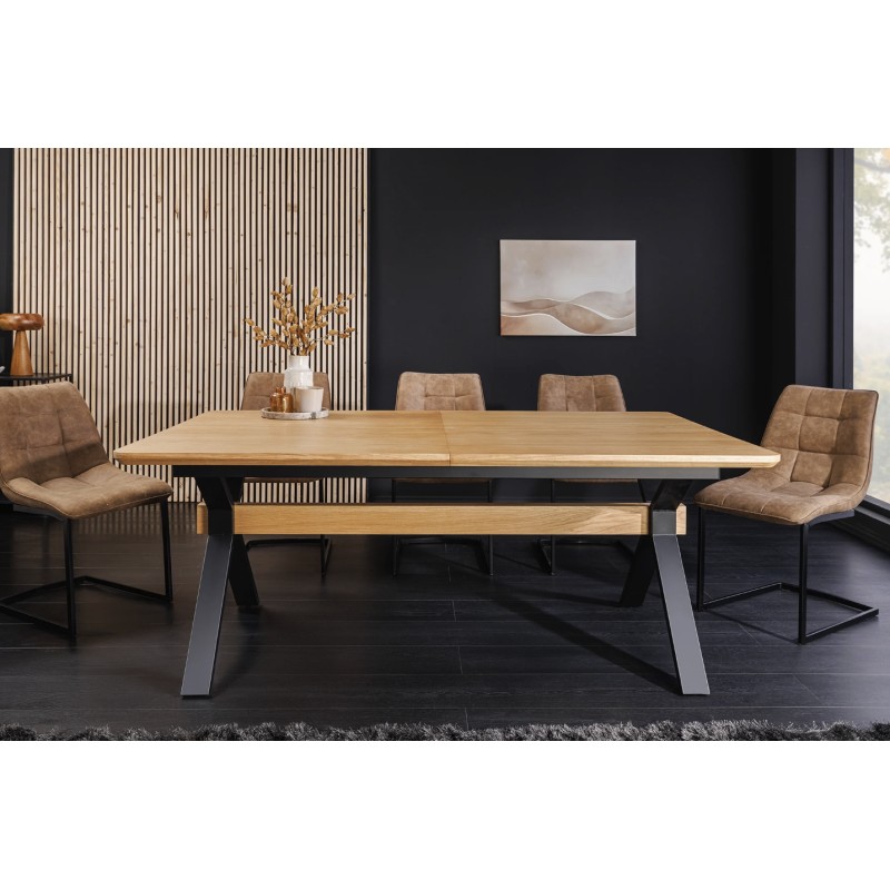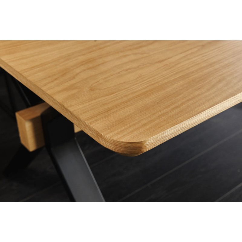 La table de salle à manger RADIAM associe un plateau en MDF plaqué chêne à une structure robuste en métal noir, offrant un style industriel moderne et intemporel. Sa forme rectangulaire et son esthétique bois & métal en font un meuble tendance, idéal pour sublimer une salle à manger contemporaine.