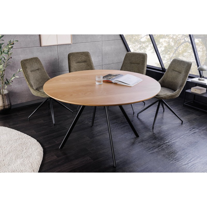 La table de salle à manger SOREN associe un plateau en bois aspect chêne à une structure en métal noir, offrant un design industriel moderne et chaleureux. Son format rond de 120 cm est idéal pour optimiser l’espace tout en favorisant une atmosphère conviviale et équilibrée dans votre salle à manger.