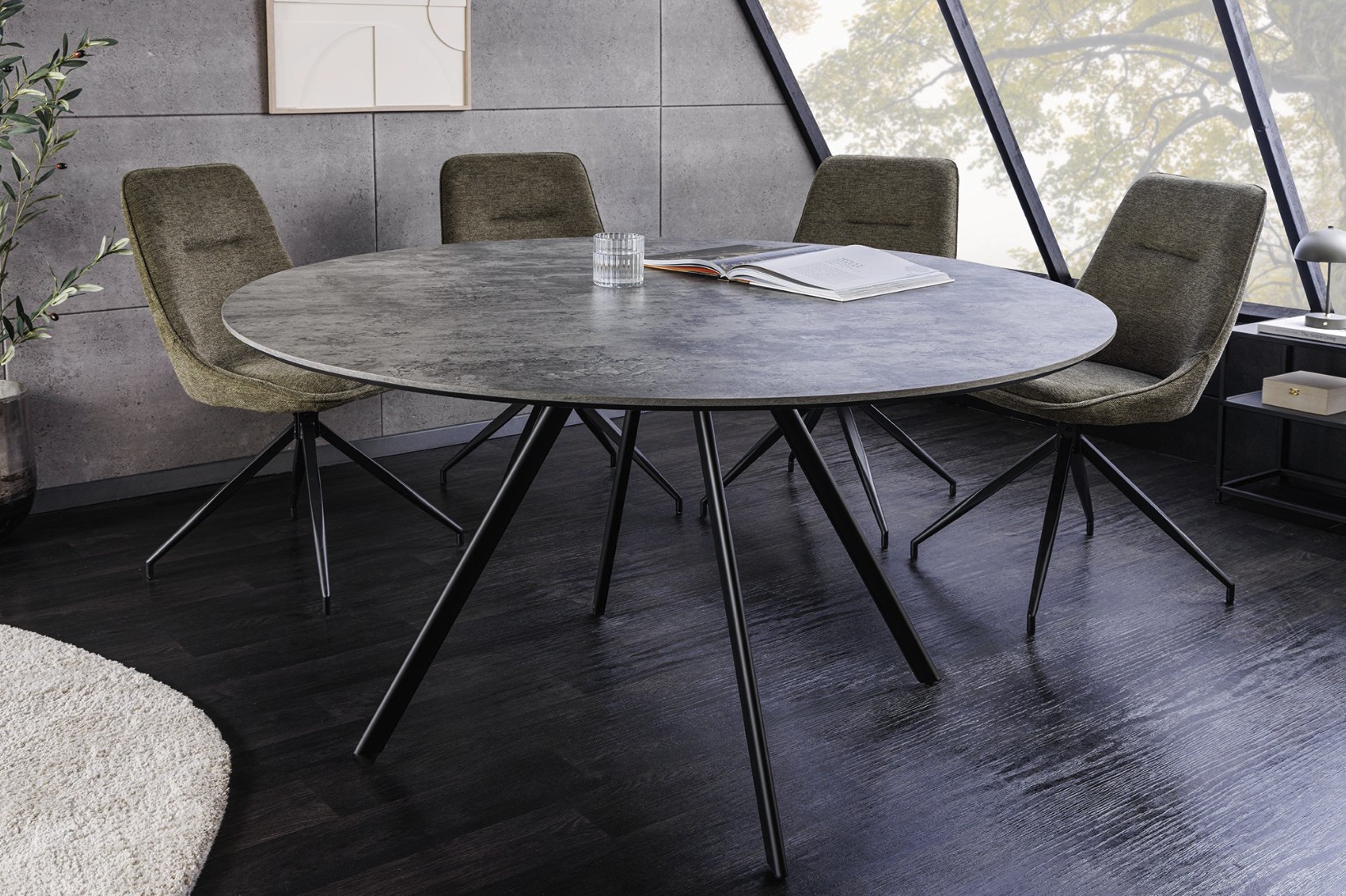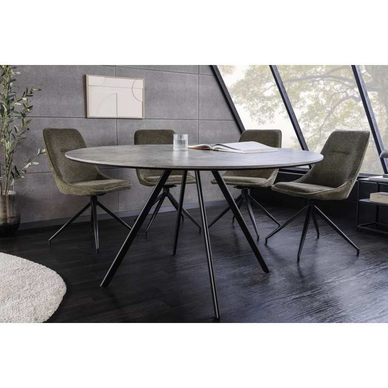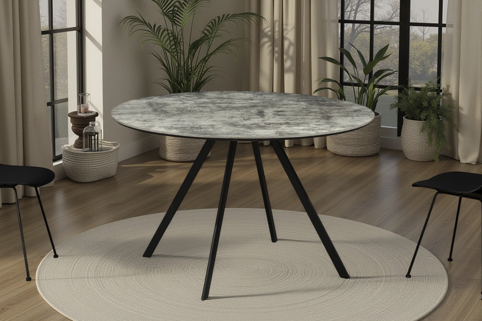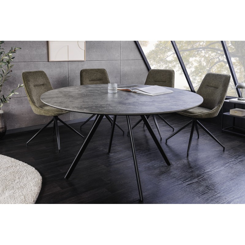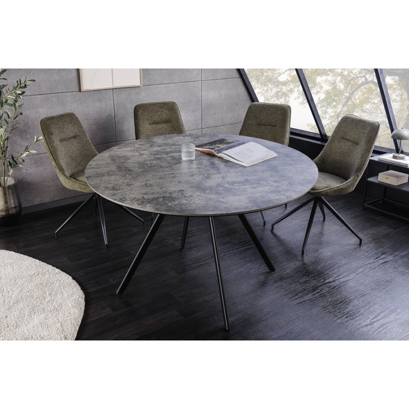 La table de salle à manger SOREN associe un plateau en mélaminé aspect pierre à une structure en métal noir, créant un look moderne et épuré. Son diamètre de 120 cm offre un format idéal pour optimiser l’espace tout en favorisant une ambiance conviviale et contemporaine.