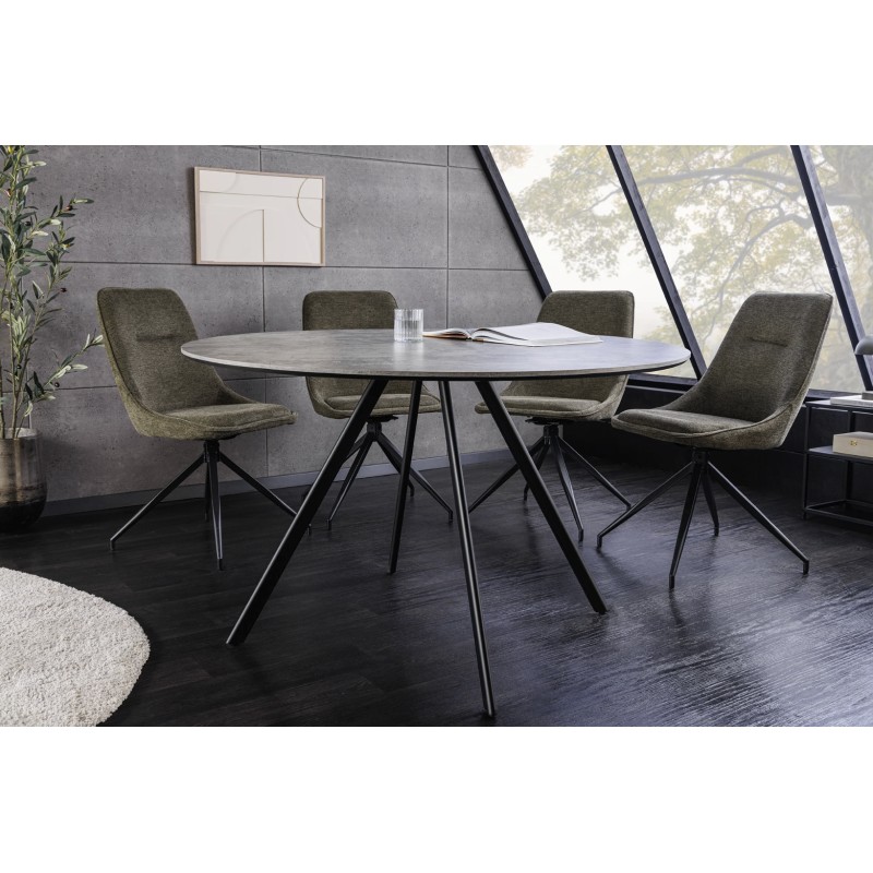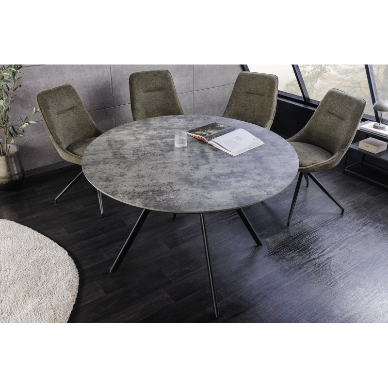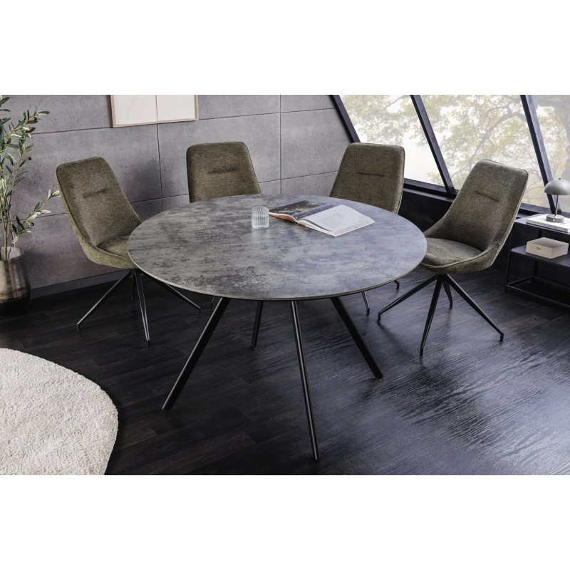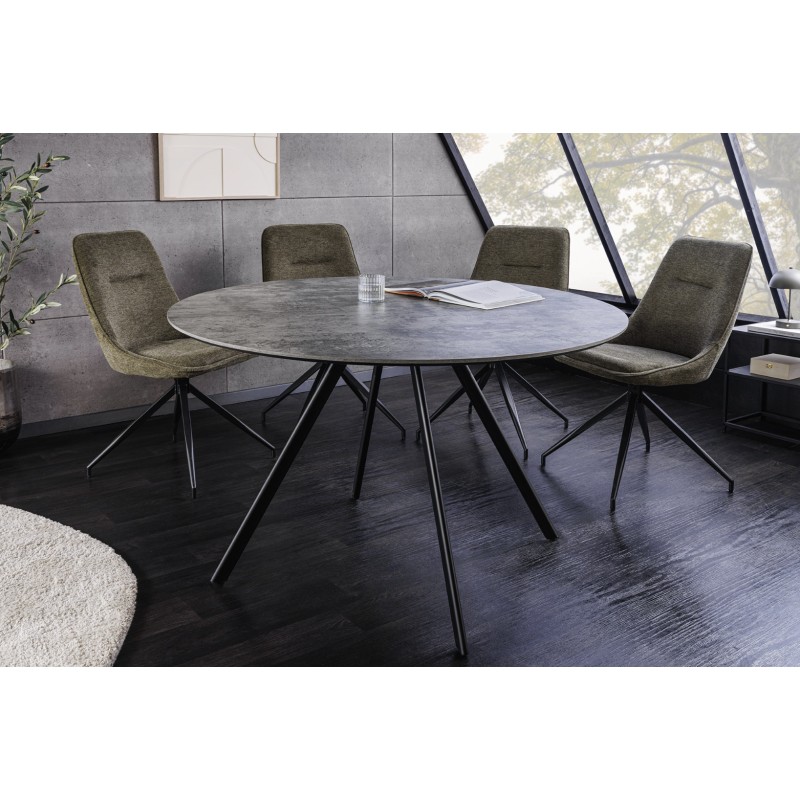 La table SOREN séduit par son plateau épais de 20 mm et sa structure métal solide, assurant stabilité et durabilité. Son effet pierre apporte une ambiance minérale tendance, tandis que la forme ronde favorise la convivialité et un gain de place optimal dans votre intérieur.