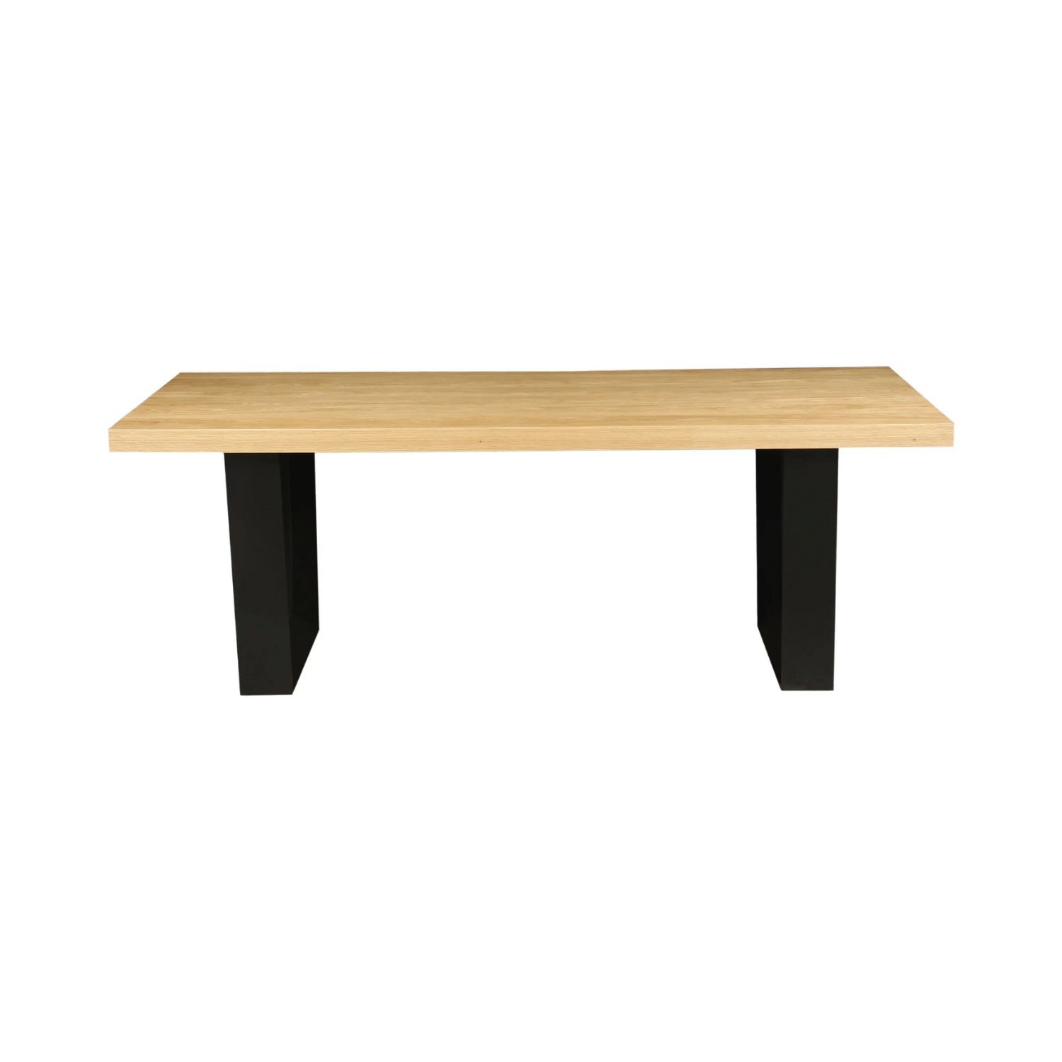 La table de salle à manger AZMA combine élégance, modernité et robustesse grâce à son plateau en placage de chêne et à ses pieds en métal noir en forme de U. Avec ses 210 cm de longueur, elle offre un espace généreux pour accueillir famille et invités, tout en apportant une touche contemporaine à votre intérieur.