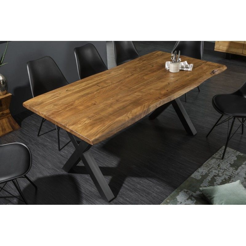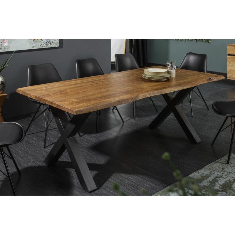 La table de salle à manger ARKAYA 180 cm séduit par son design robuste et son charme brut. Son plateau en bois massif d’acacia verni s’accorde harmonieusement avec ses pieds en métal noir en forme de X, pour un rendu à la fois moderne et chaleureux. Véritable pièce maîtresse, elle apportera du caractère à votre salle à manger.