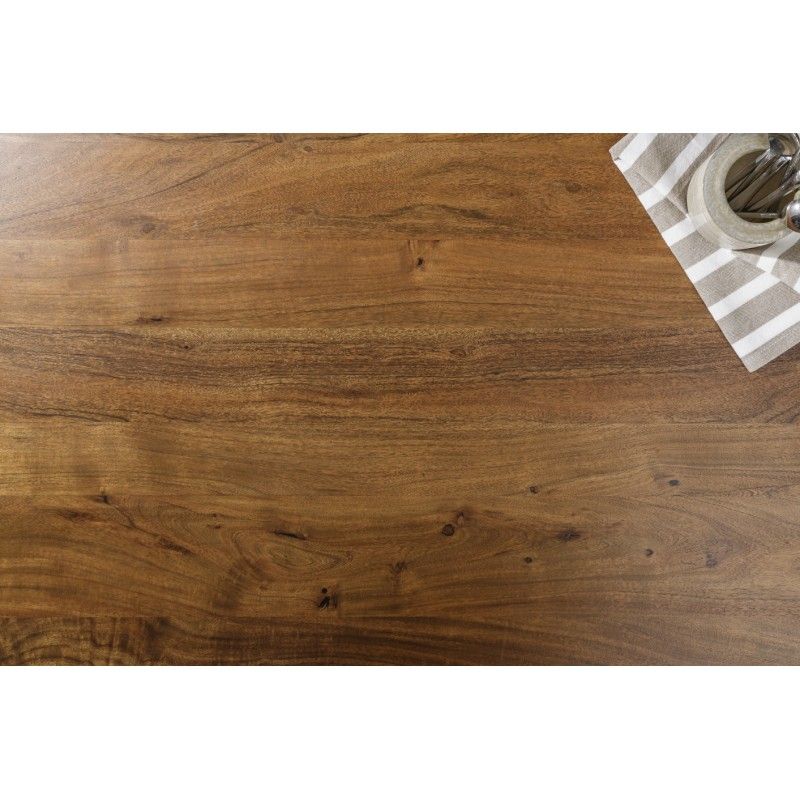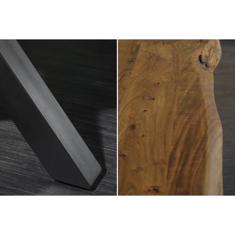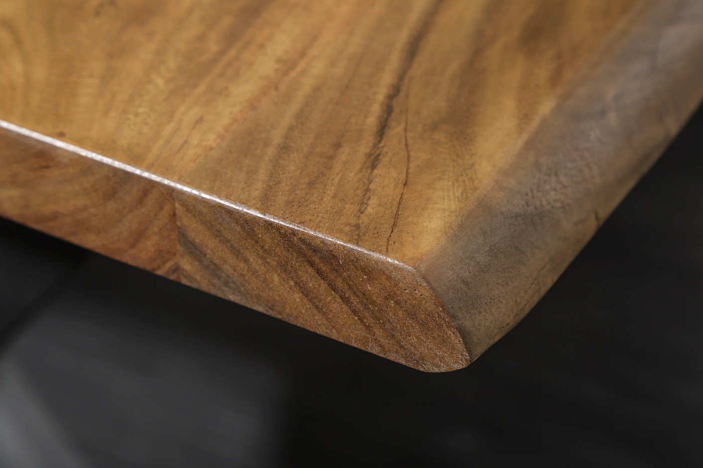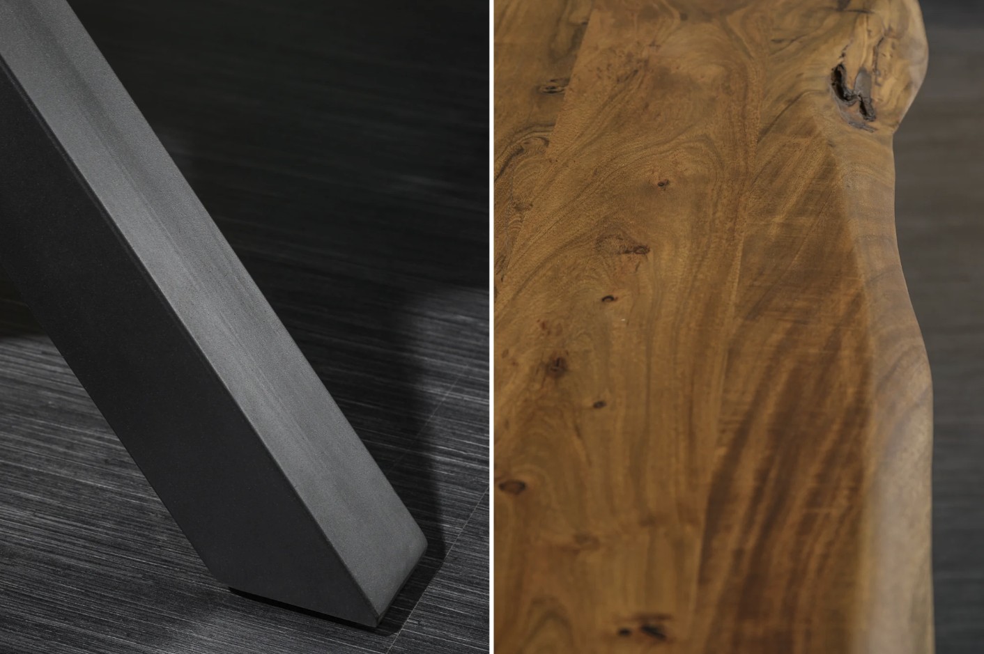 Grâce à son plateau épais de 35 mm et à sa structure métallique en X, la table ARKAYA combine solidité et esthétisme. Les nuances du bois massif d’acacia verni soulignent le savoir-faire artisanal de sa fabrication, tandis que les pieds noirs apportent une touche industrielle élégante. Sa distance entre les pieds de 124 cm permet d’accueillir confortablement jusqu’à 6 convives.