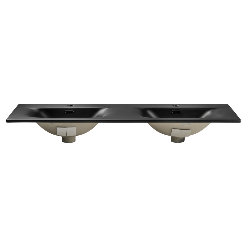 Apportez du caractère à votre salle de bain avec la vasque à encastrer VELOA 120 cm en céramique noir mat. Dotée de deux cuves intégrées, elle est idéale pour une utilisation à deux tout en offrant un rendu contemporain et haut de gamme.