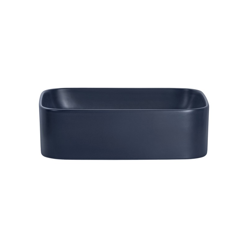 Sa forme rectangulaire aux angles délicatement arrondis adoucit les lignes tout en conservant un style affirmé. La finition bleu marine mat renforce son aspect haut de gamme tout en limitant les traces visibles au quotidien. La bonde clic clac assortie complète l’ensemble avec un système d’ouverture simple et pratique par pression.