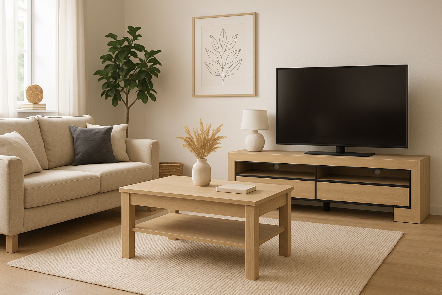 De tv-kast en salontafelset, met een bijpassend ontwerp, zorgen voor echte visuele samenhang. Door verschillende modellen uit dezelfde collectie te kiezen, vermijd je smaakloosheid of een houtkap die niet helemaal op een andere lijkt. Zo krijg je daardoor een gekalmeerde en homogene atmosfeer.
