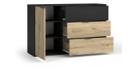 Dit dressoir biedt genereuze opbergruimte met zijn 3 ruime lades en 1 deur. Perfect om je kleding, accessoires of andere items netjes en toegankelijk te organiseren.