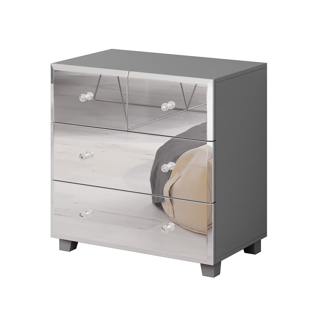 Een buitengewone opbergruimte! Dit volledig met spiegels bedekte dressoir zal indruk maken. Door met het licht te spelen, zal het uw slaapkamer of uw entree transformeren.
