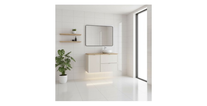 | Inhoud van het pakket | 1 meuble sous vasque + 1 meuble avec panier à linge intégré + 1 plan pour vasque + 1 vasque à poser |