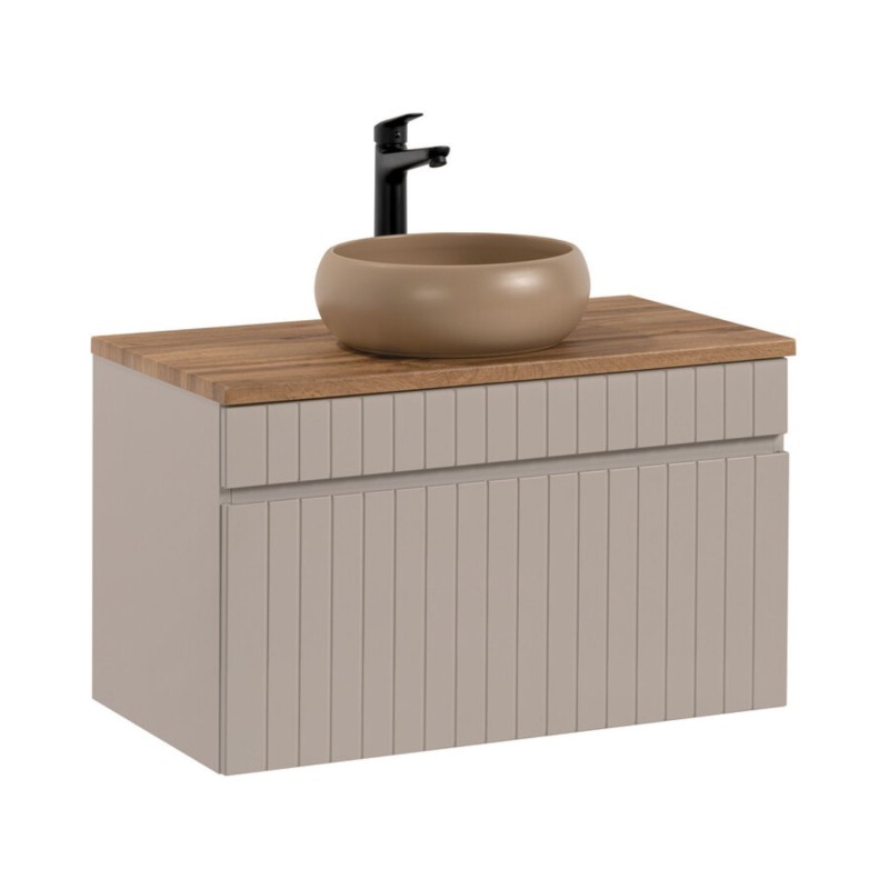 Badkamerset ICON: onderkast 80cm kasjmier + blad voor wastafel + ronde opbouwwastafel