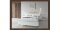 Geef uw slaapkamer een moderne touch met het bed FLORENCE 160x200 cm. Ontworpen in een elegante witte kleur met eiken effect details, onderscheidt dit bed zich door zijn grafische hoofdeinde en zijn twee geïntegreerde nachtkastjes met strakke lijnen. Een ideale keuze voor liefhebbers van hedendaags design die functionaliteit zoeken.