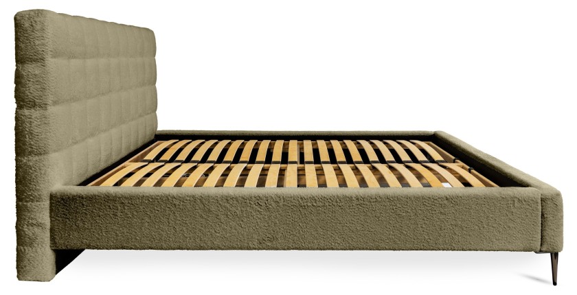 Ontdek de opperste elegantie met het bed MILLIO 180x200 cm, ideaal voor liefhebbers van XXL comfort. Bekleed met een weelderige olijfgroene bouclé chenille stof, combineert dit model uitzonderlijke zachtheid en verfijnde esthetiek, waardig aan de grootste luxe hotels.