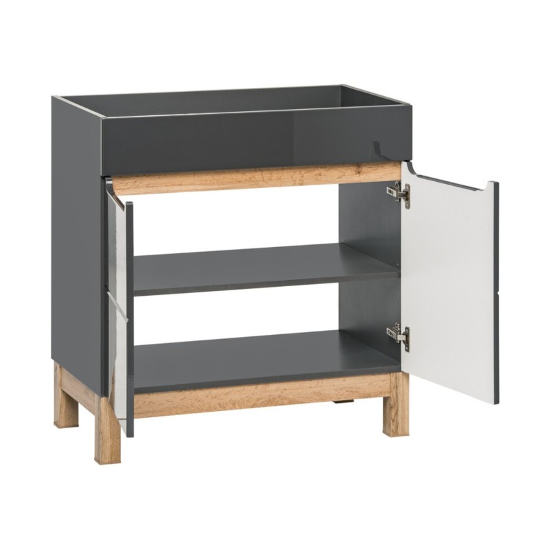 Avec une capacité de charge maximale de 100 kg, ce meuble combine robustesse et raffinement. Sa surface brillante et son contraste de teintes bois/anthracite ajoutent une touche de modernité à votre salle de bain, tout en facilitant son entretien.