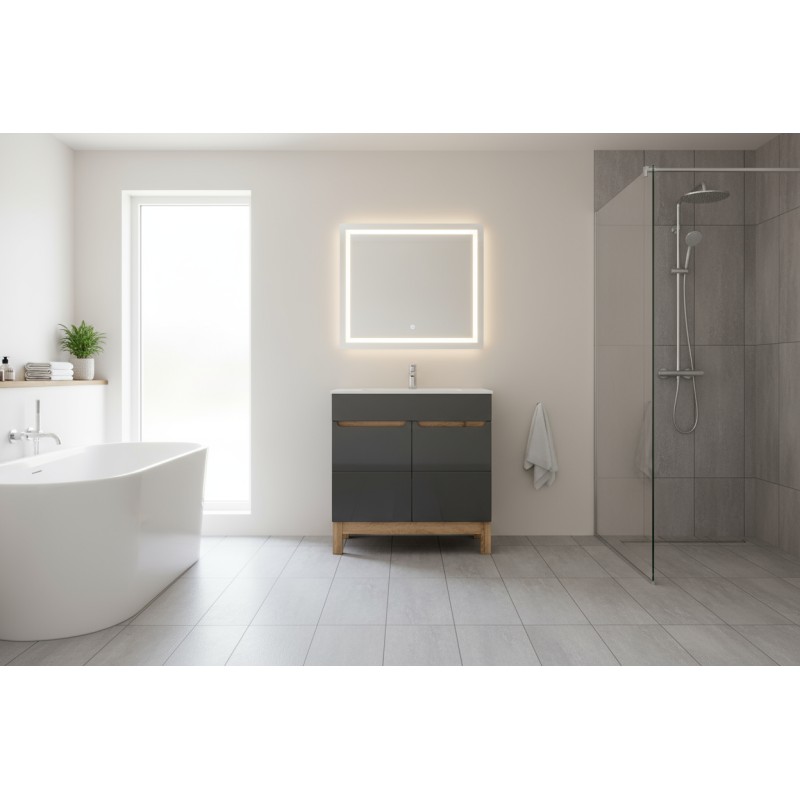 Le meuble sous-vasque ERMANO 80 cm allie élégance et fonctionnalité pour offrir un espace de rangement pratique et moderne dans votre salle de bain. Sa combinaison de bois clair et gris brillant illumine la pièce et s’intègre parfaitement dans une décoration contemporaine.