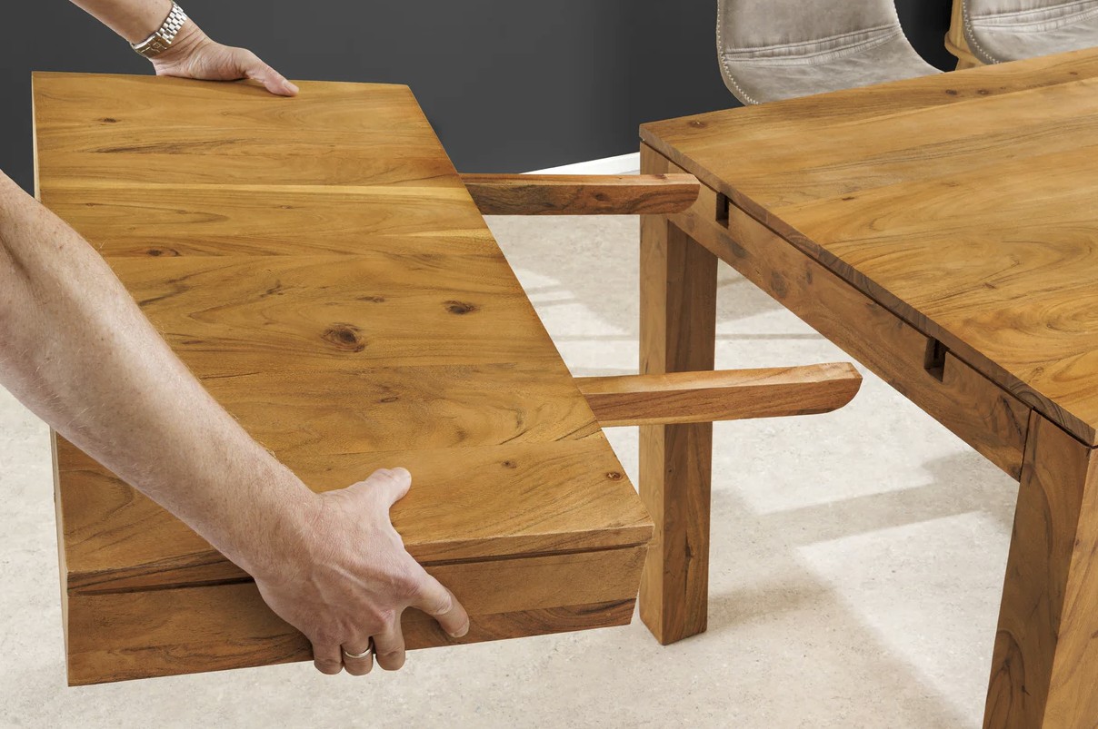 Compacte au quotidien, cette table extensible de 120 cm s’allonge facilement jusqu’à 200 cm grâce à son système d’allonge, vous permettant d’accueillir confortablement vos convives lors de grandes occasions. Sa capacité de charge maximale de 100 kg garantit robustesse et durabilité. Avec une distance de 104 cm entre les pieds, elle offre une excellente stabilité et un confort optimal pour vos chaises.