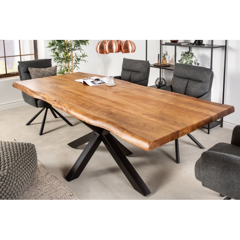 Donnez du caractère à votre intérieur avec la table ARKAYA 220 cm. Son plateau en bois massif d’acacia verni séduit par ses nuances naturelles et son aspect chaleureux, tandis que sa structure en métal noir apporte une touche moderne et industrielle. Élégante et robuste, cette table deviendra rapidement la pièce maîtresse de votre salle à manger.